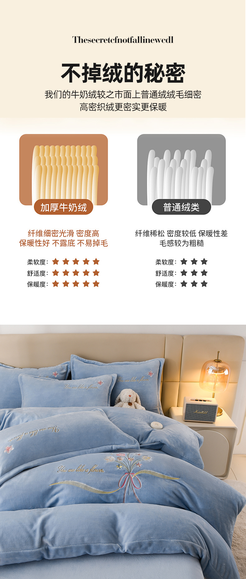 商品名称:绣女坊 2025新款高克重牛奶绒刺绣四件套 郁金香-天蓝
