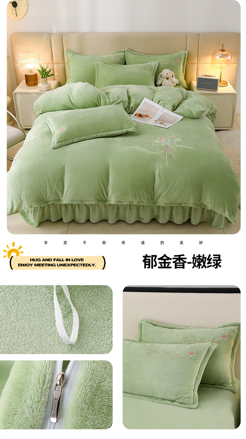 (总)绣女坊 2025新款高克重牛奶绒刺绣四件套,郁金香-爱玛橙,郁金香-豆沙,郁金香-灰,郁金香-酒红,郁金香-孔雀蓝,郁金香-玫粉,郁金香-嫩绿,郁金香-天蓝,郁金香-香芋紫