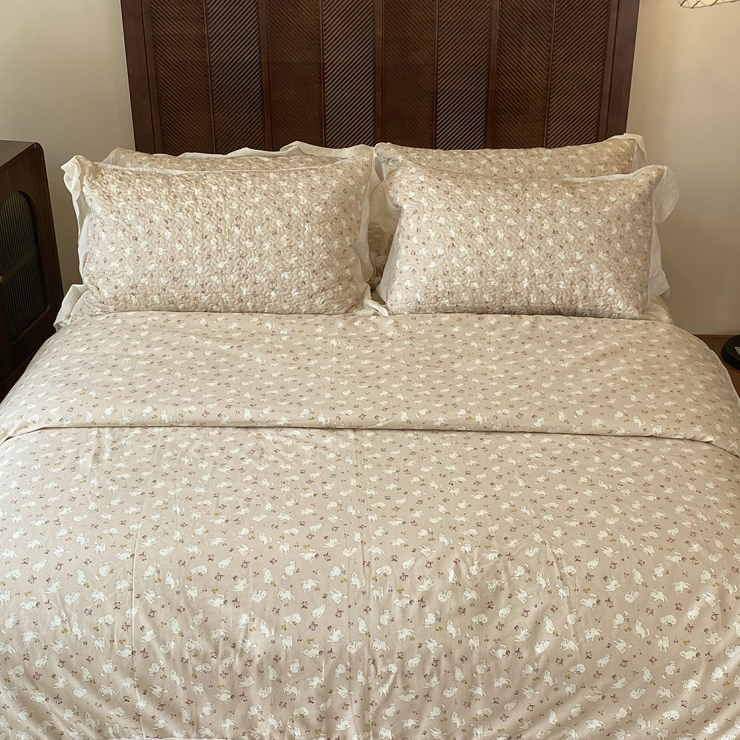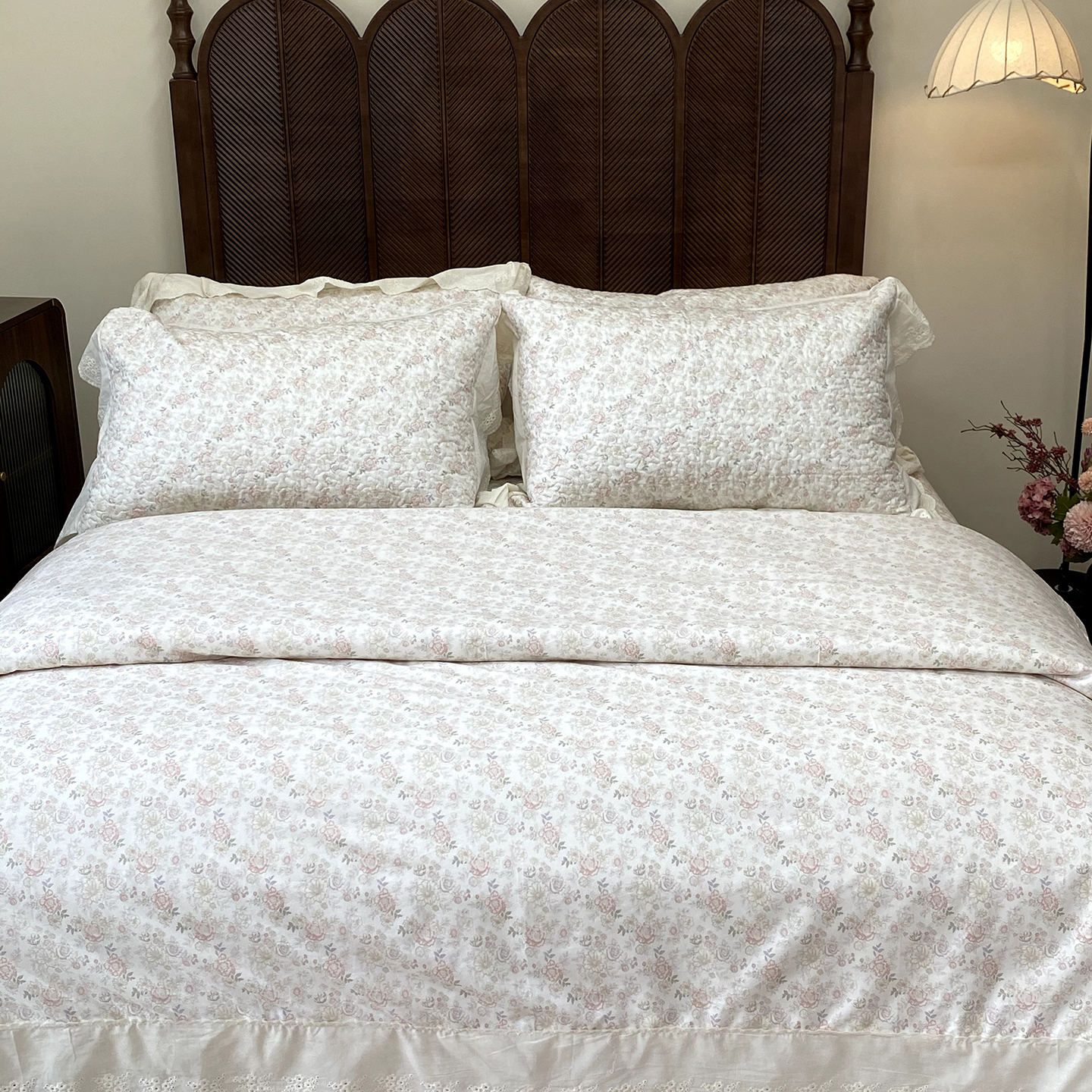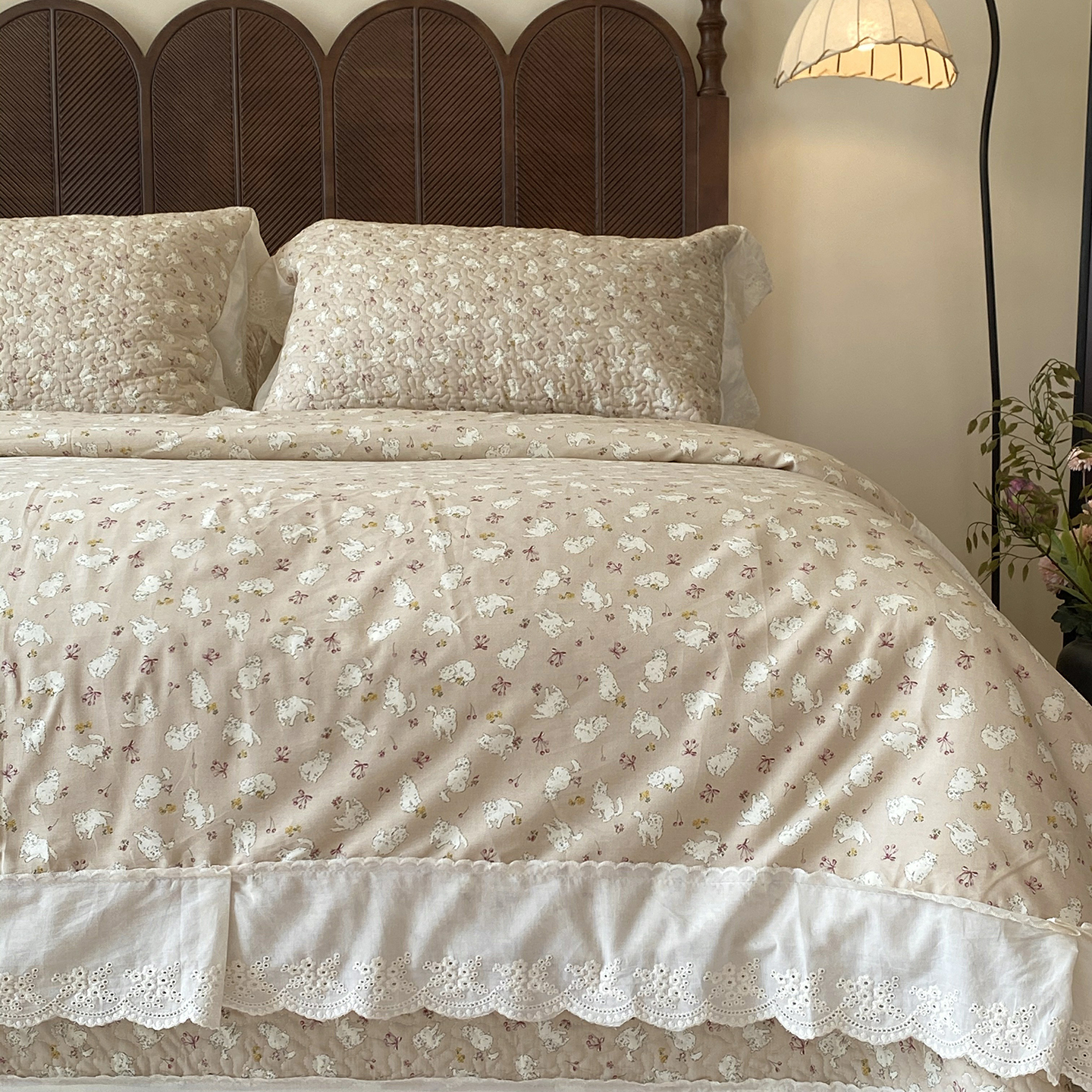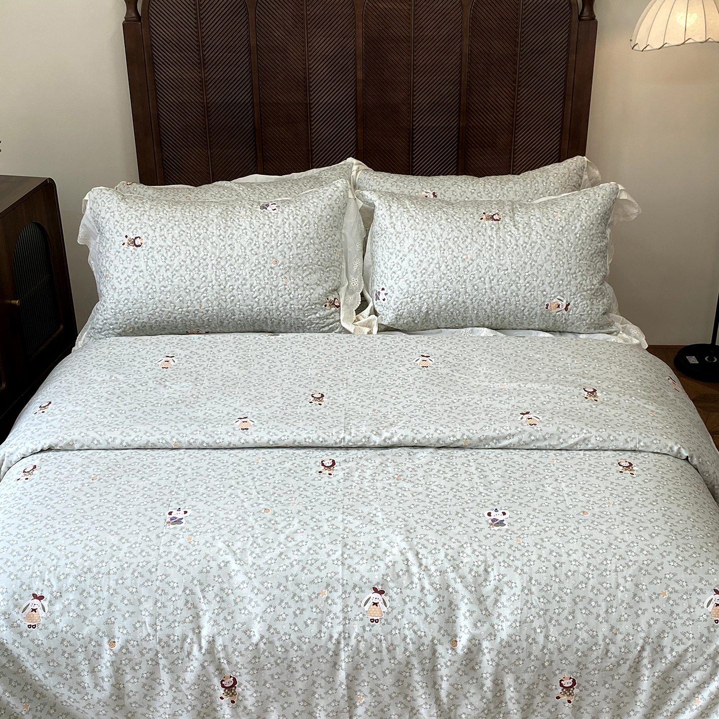商品名称:奈萝家纺 2025新款13372全棉法式大花边床盖被套四件套 唐顿小熊