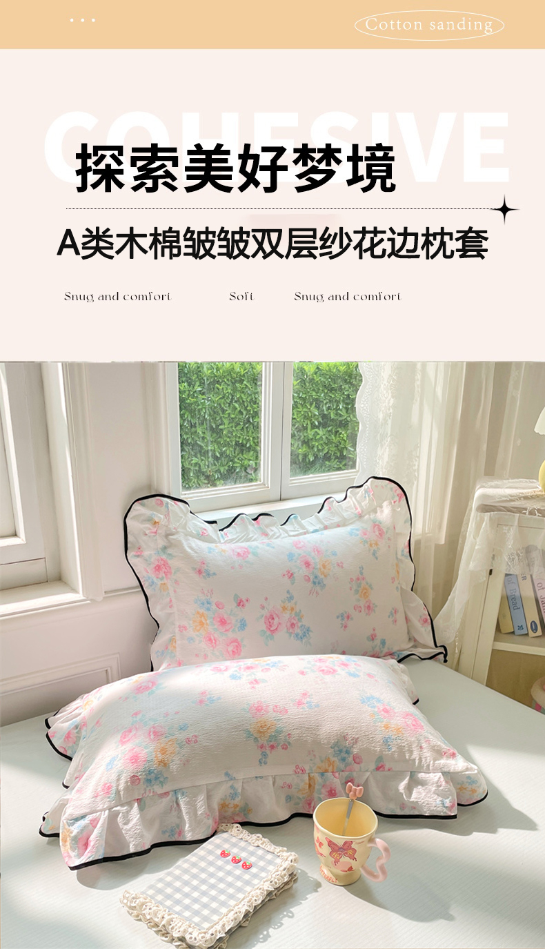 商品名称:梦舒羽 2025新款云感双层纱花边枕套宿舍学生48x74一对枕芯内胆套 朝花夕拾