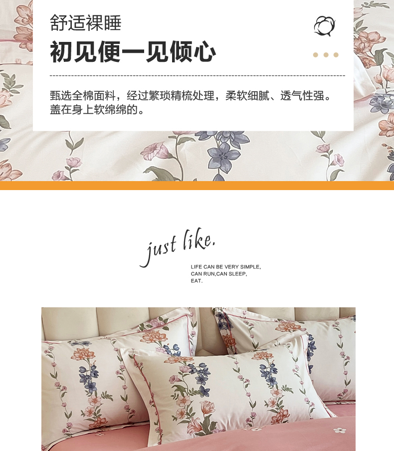 当前位置: 91家纺网 > 商品网购 > 床品套件 > 四件套 > 全棉普通四件套 > 星期三家纺 2025年8月新款铂金全棉纯棉13372四件套 眷恋