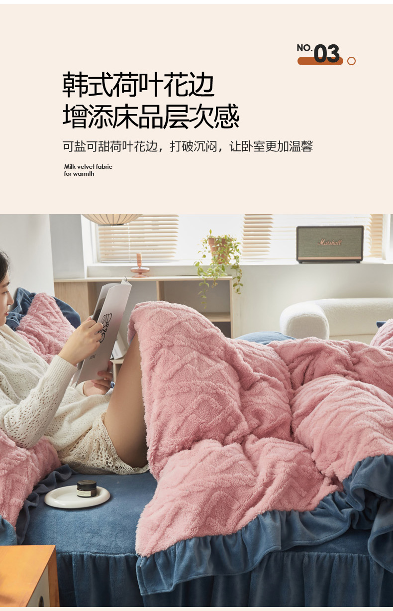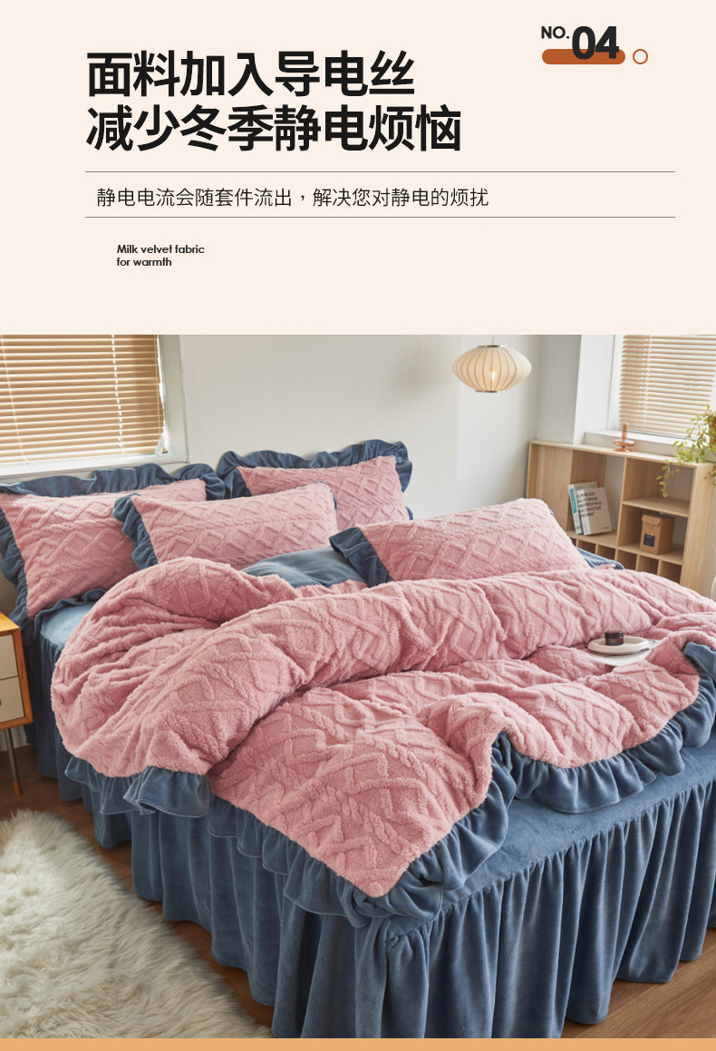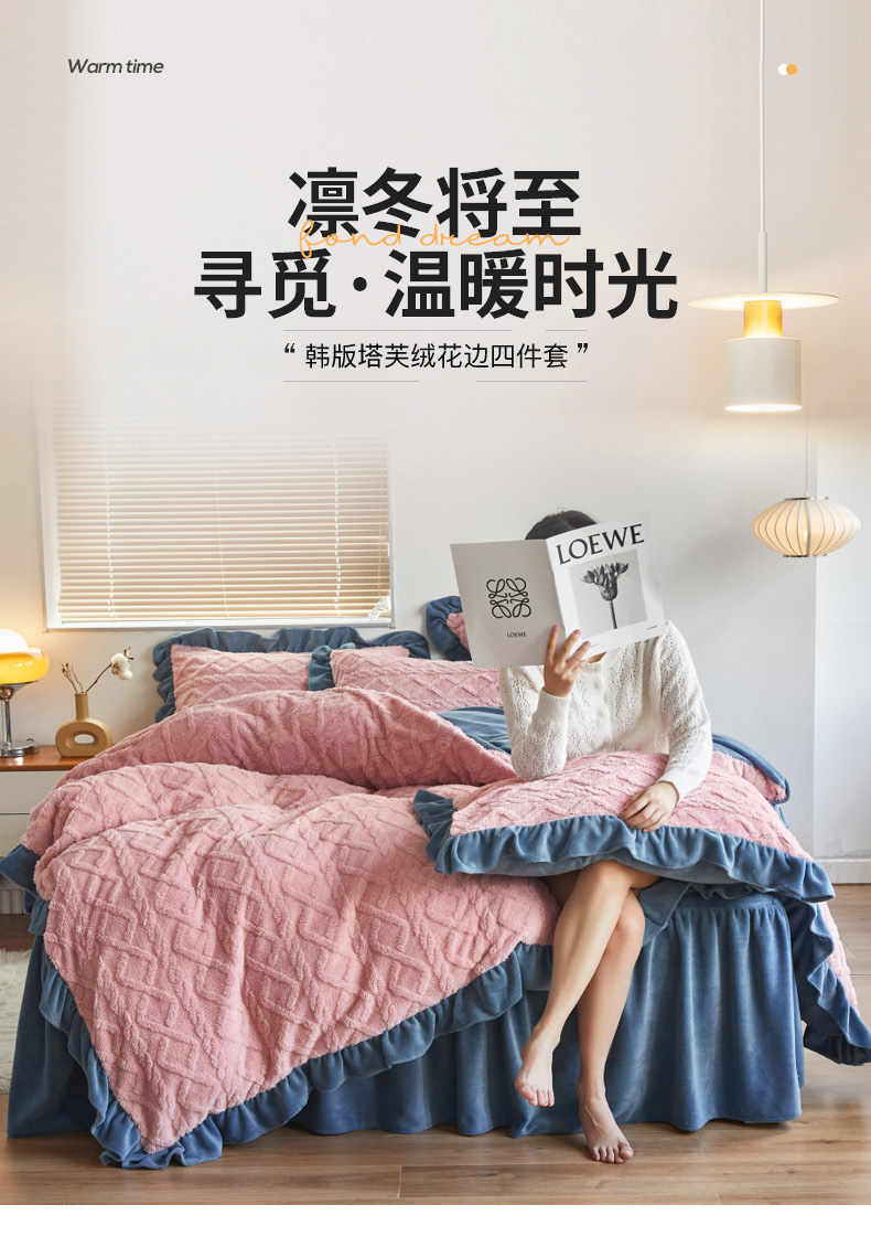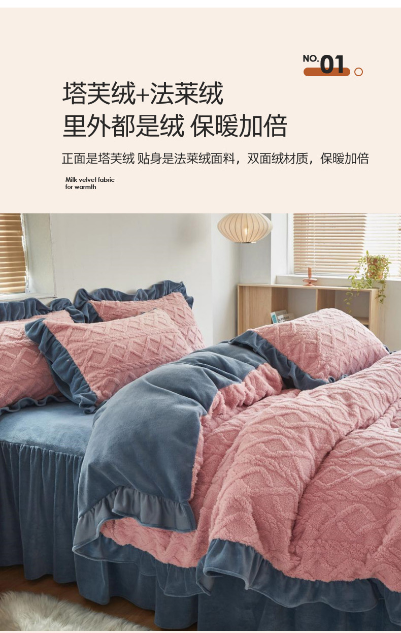 当前位置: 91家纺网 > 商品网购 > 床品套件 > 四件套 > 牛奶绒四件套 > 睡美人 2025新款韩版塔芙绒牛奶绒床单床裙床笠款四件套 依情粉+罗马灰