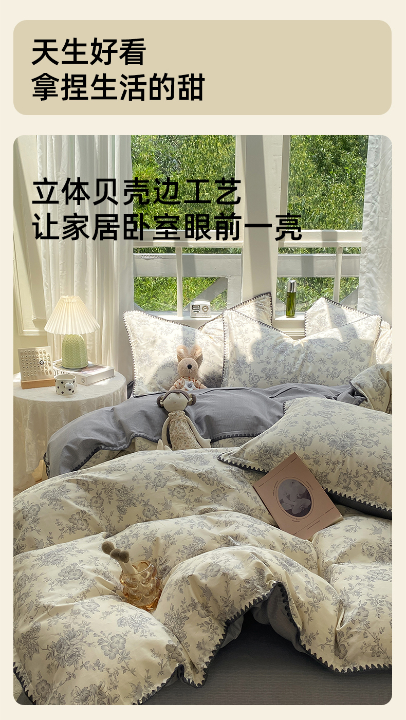 当前位置: 91家纺网 > 商品网购 > 床品套件 > 四件套 > 全棉普通四件套 > 浮光家居 2025新款全棉纯棉贝壳边四件套 洛莉