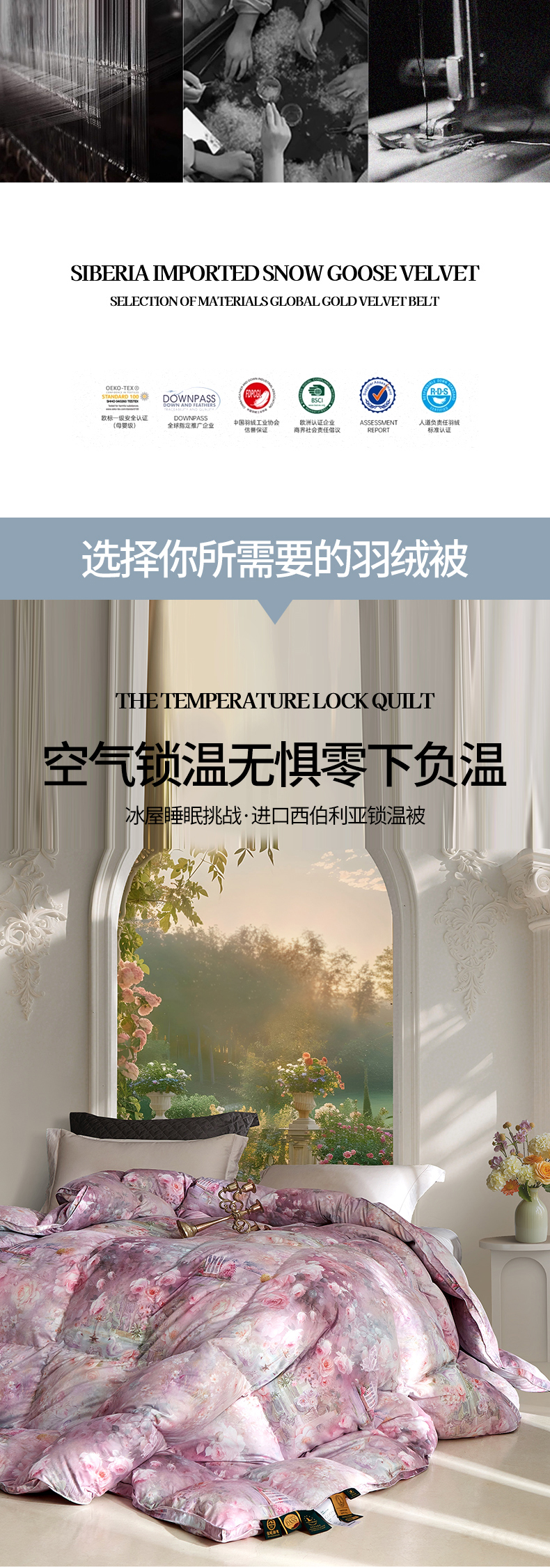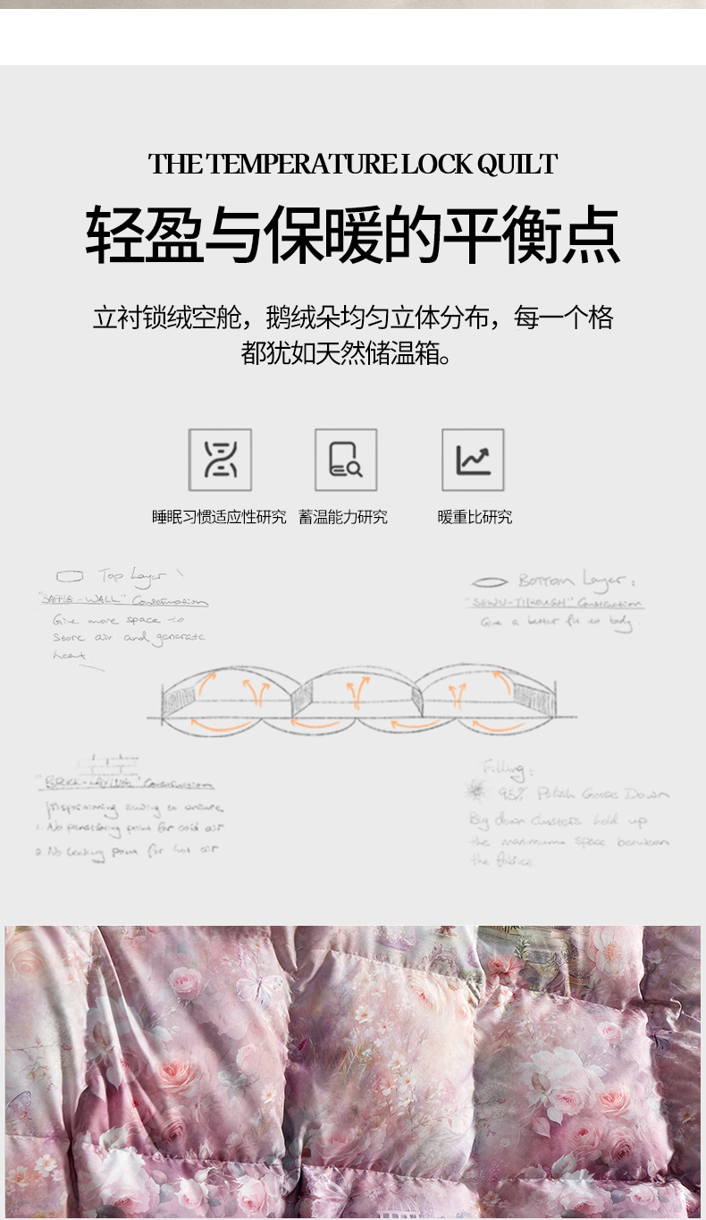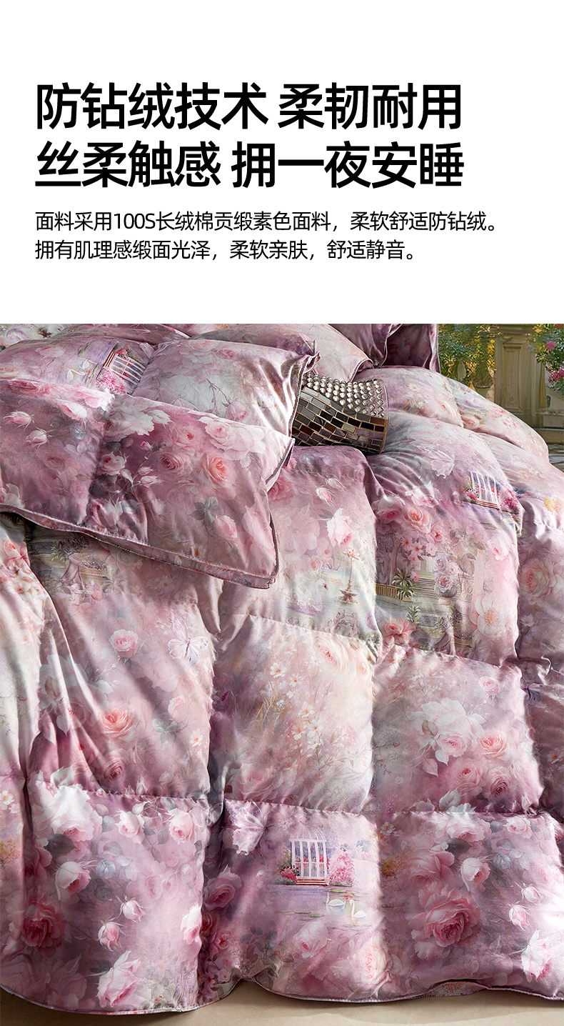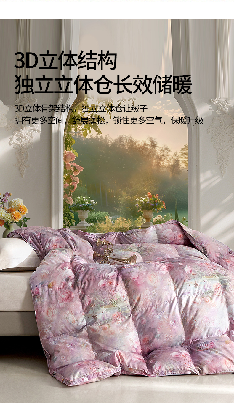 • 91家纺网 家纺一手货源 找家纺 织梦人羽绒工厂店 2025新款高蓬松羽绒被95鹅绒大牌同款花型 莫奈花园新