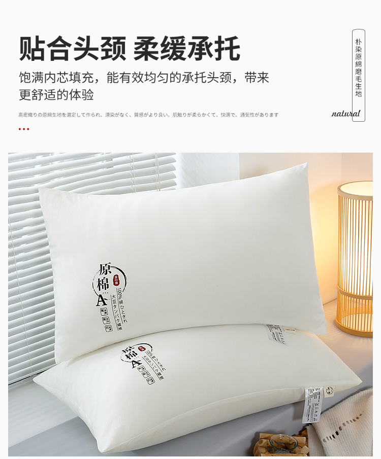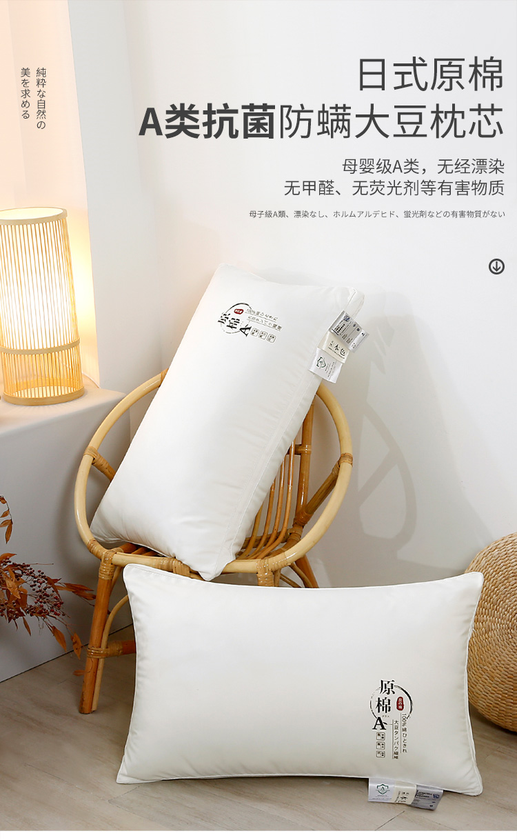 商品名称:永乐枕芯 2025新款A类抗菌防螨原棉双边大豆枕原棉枕芯 单边圆角