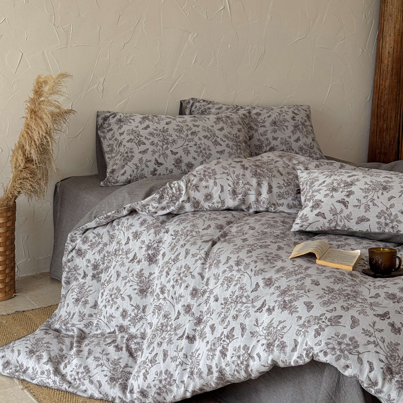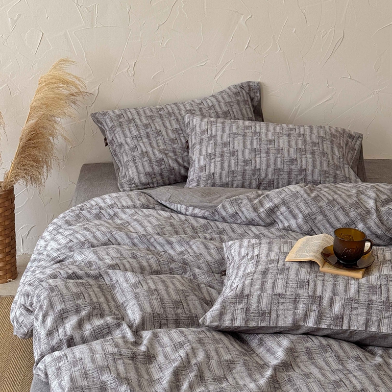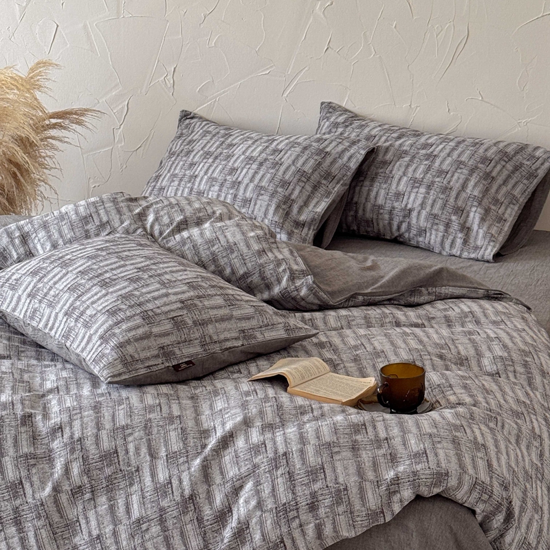 于果 2025新款全棉纯棉色织提花四件套 如梦灰