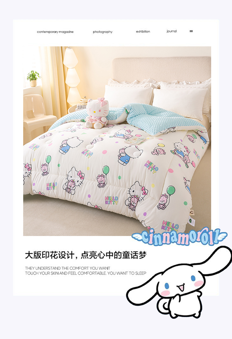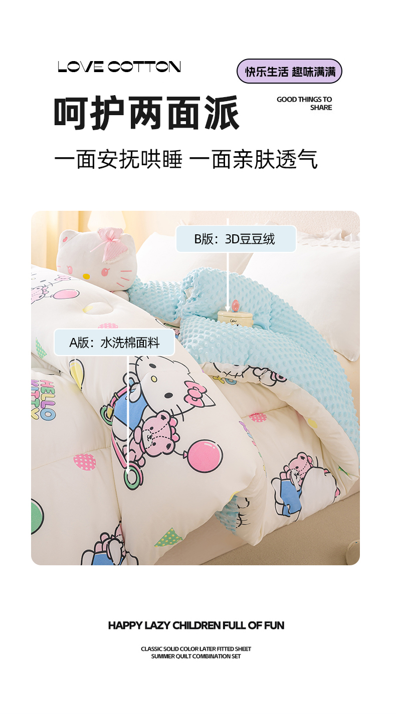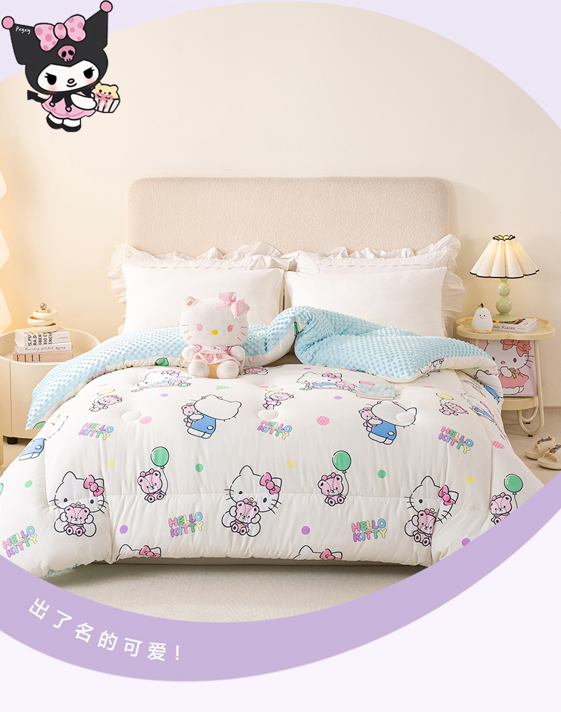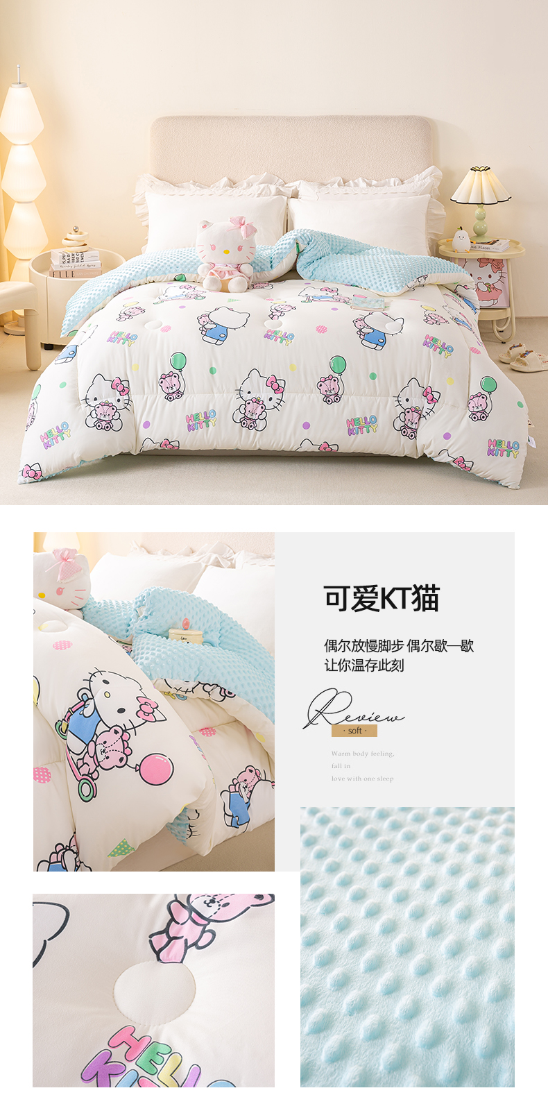 • 91家纺网 家纺一手货源 找家纺 米乐被业 2025新款三丽鸥水洗棉豆豆被被子被芯冬被 可爱KT猫