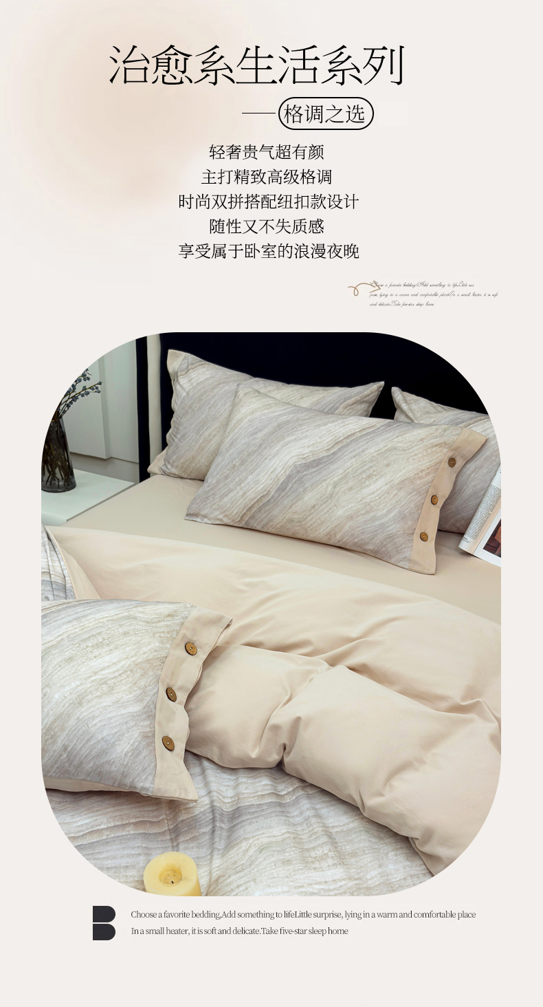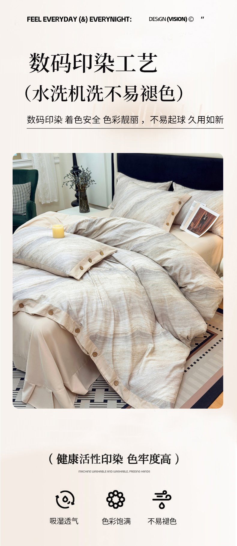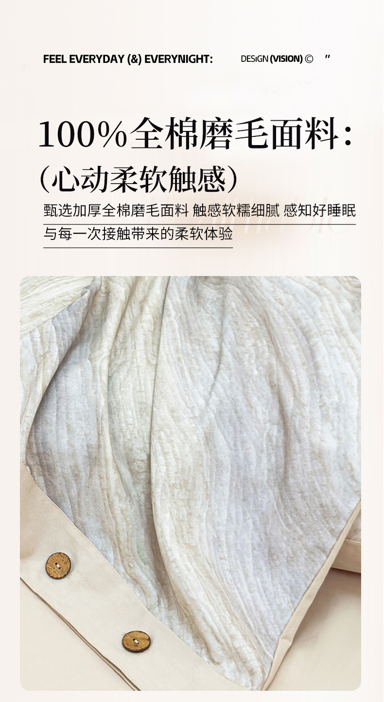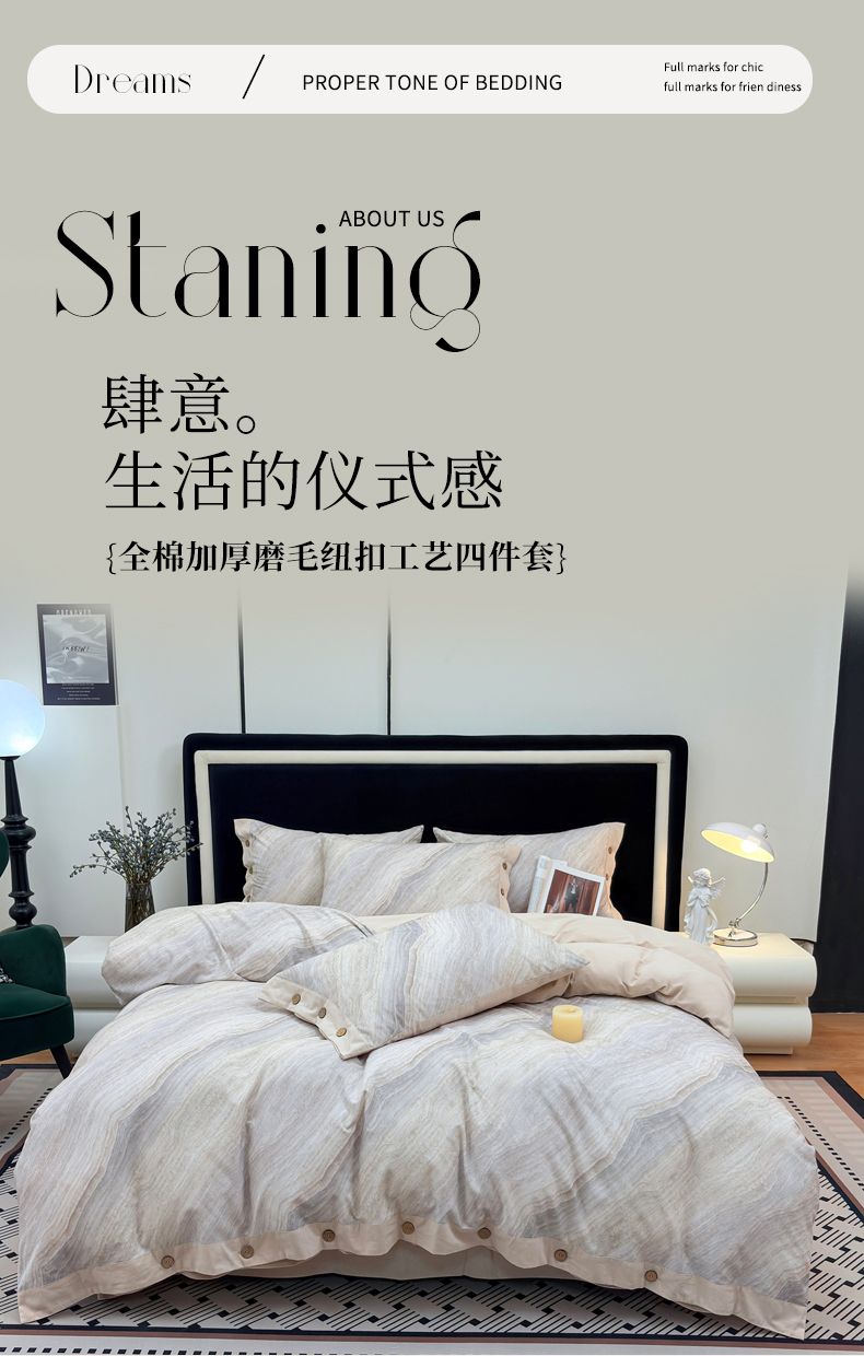 • 91家纺网 家纺一手货源 找家纺 未来家居 2025秋冬新款全棉加厚磨毛纽扣工艺四件套 烟云灰