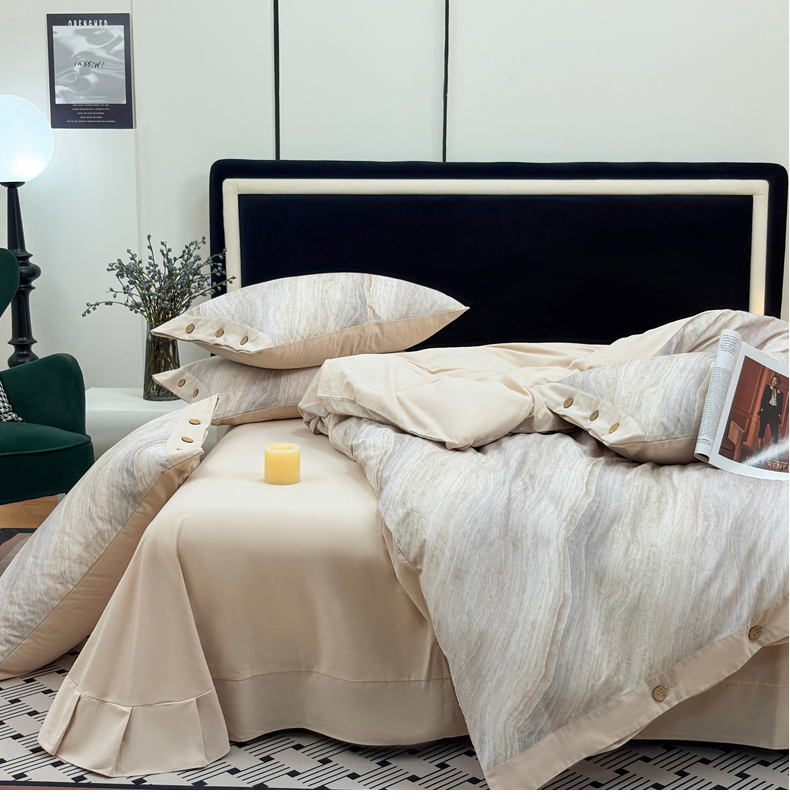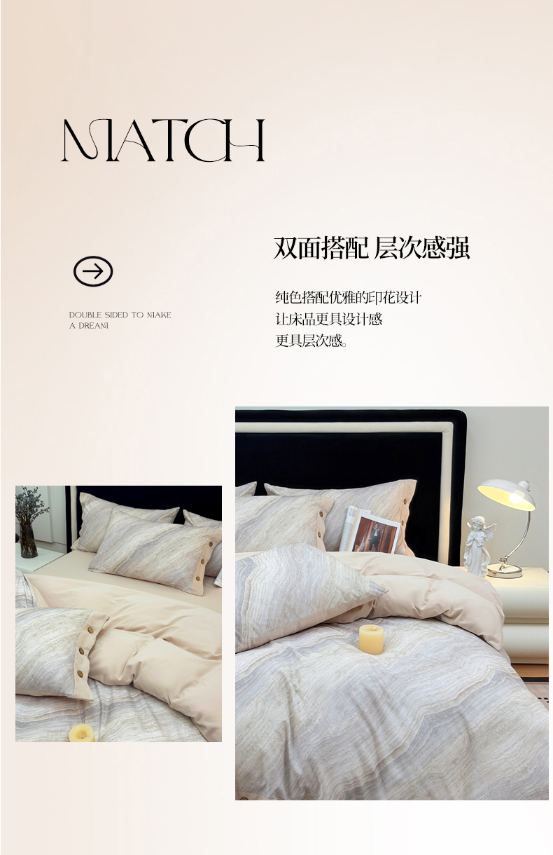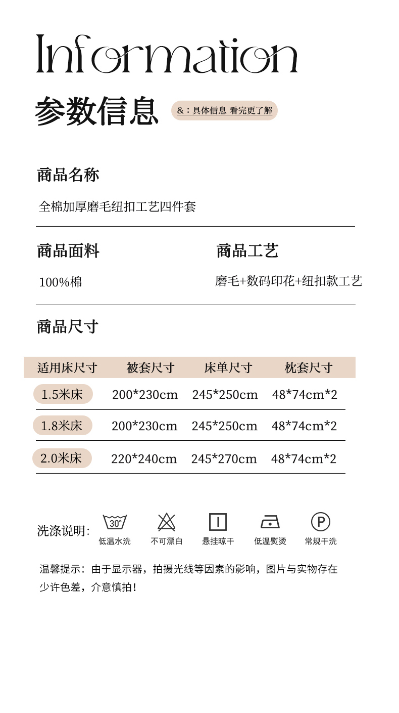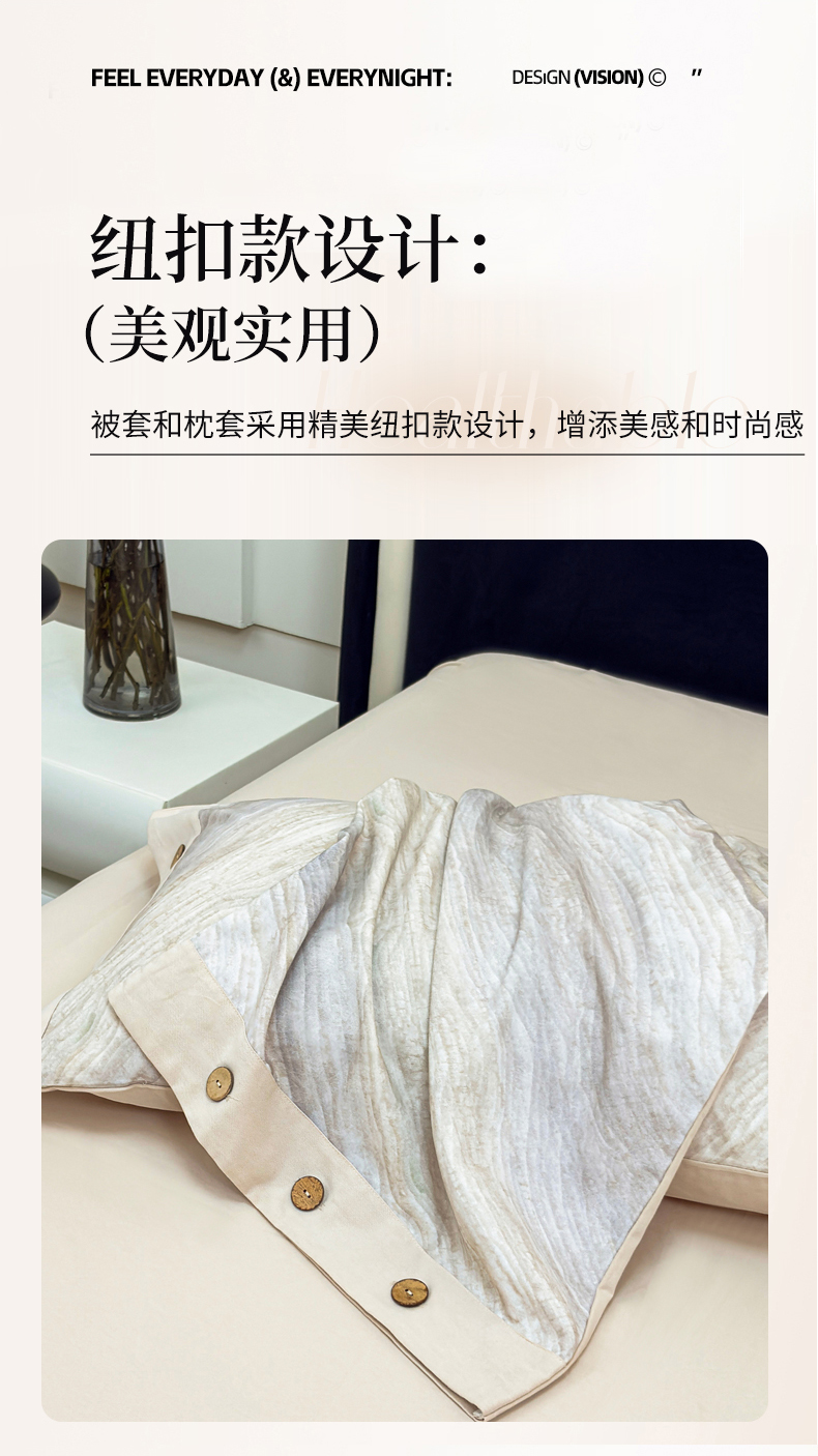 • 91家纺网 家纺一手货源 找家纺 未来家居 2025秋冬新款全棉加厚磨毛纽扣工艺四件套 烟云灰