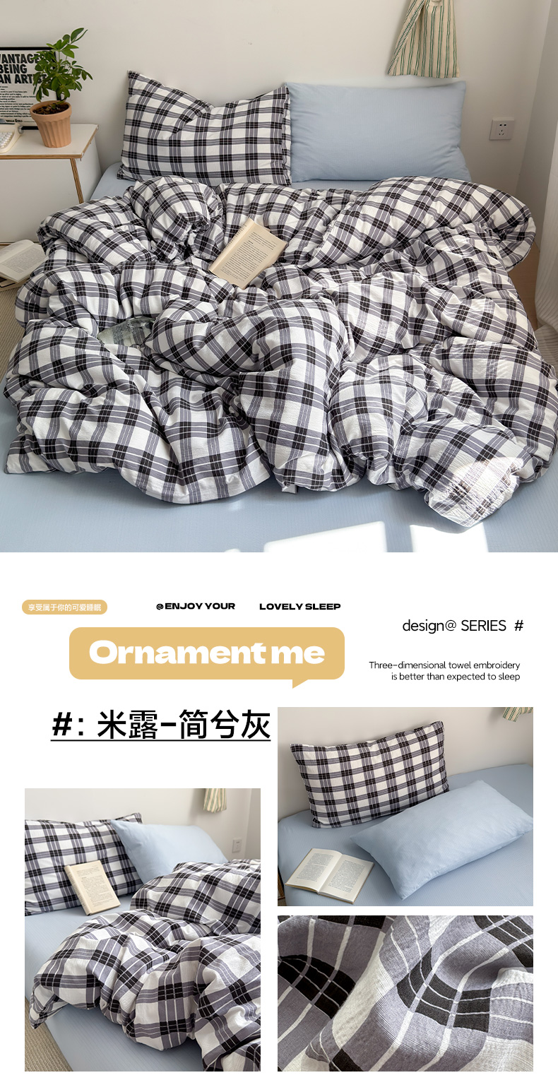当前位置: 91家纺网 > 商品网购 > 床品套件 > 四件套 > 双层纱四件套 > 罗亿家纺 2025新款云感双层纱学生季韩系泡泡棉四件套-米露(小红书推荐) 米露-青提绿