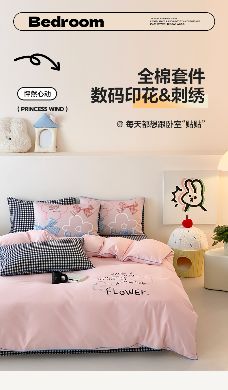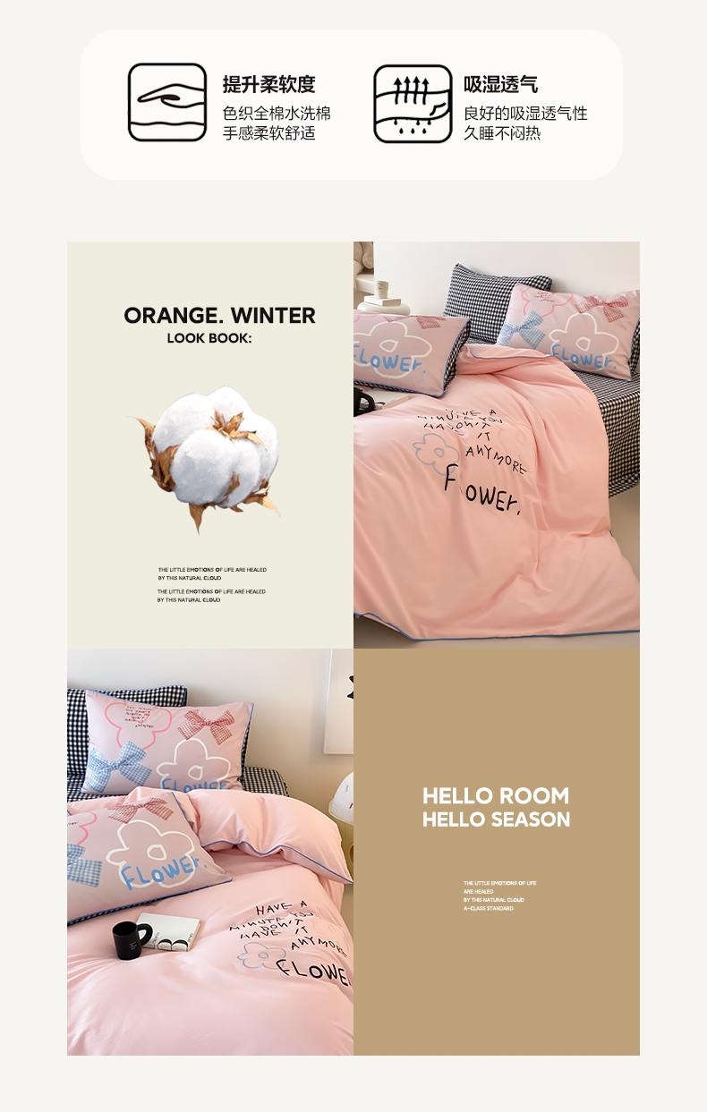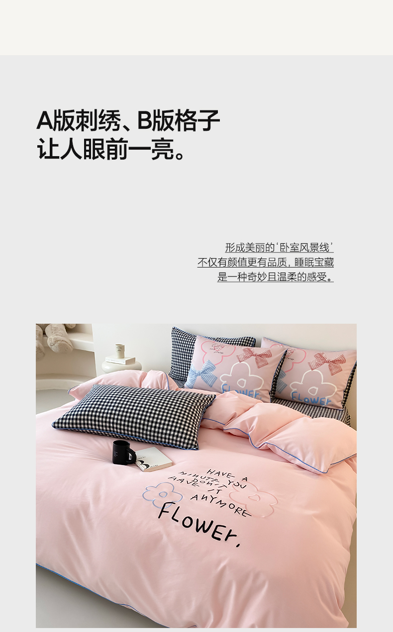 当前位置: 91家纺网 > 商品网购 > 床品套件 > 四件套 > 水洗棉四件套 > 如一 2025新款A类全棉纯棉色织水洗棉刺绣数码四件套 猫宁