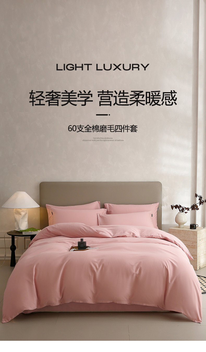 (总)宜家坊 2025新款A类60支长绒棉纯色磨毛四件套