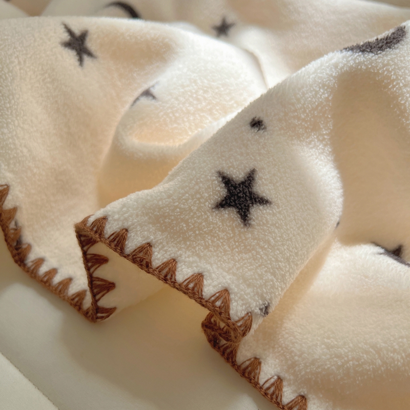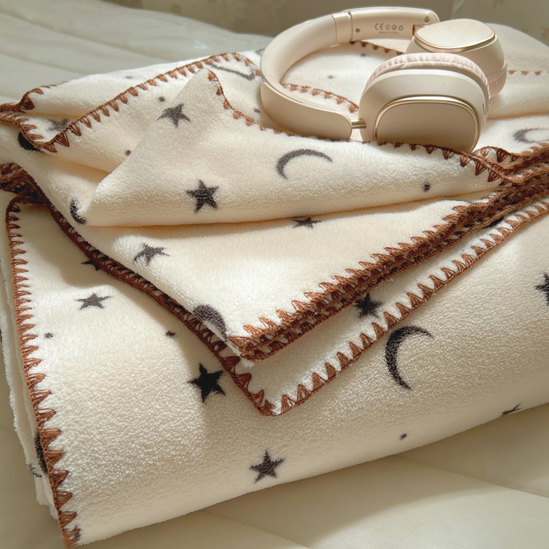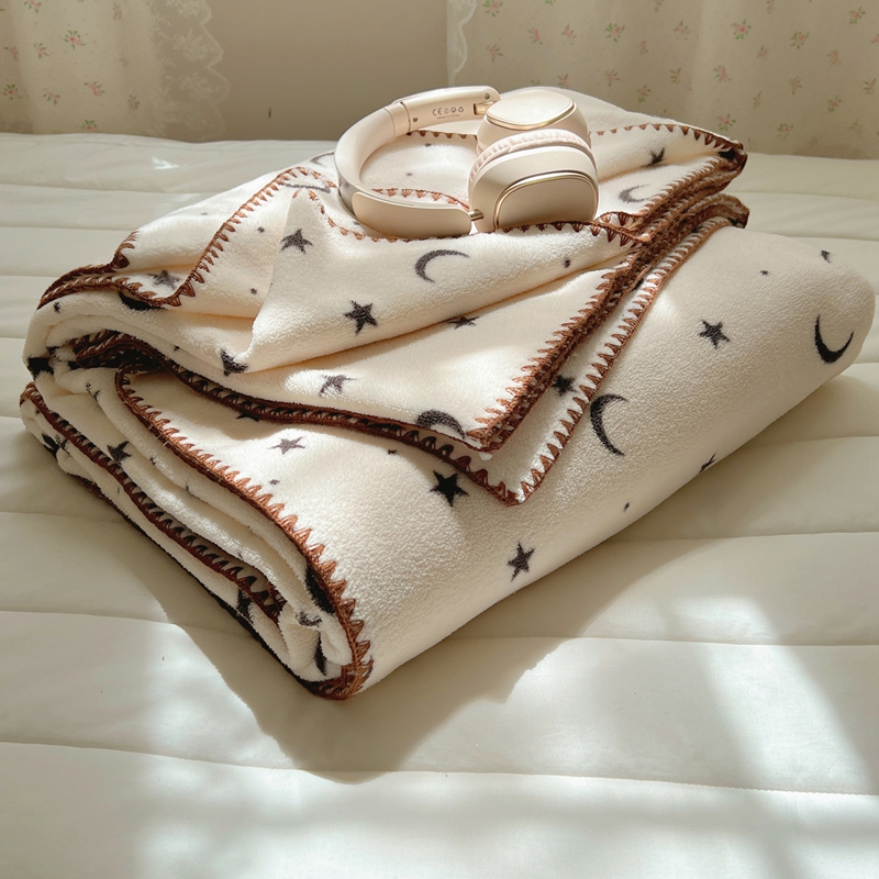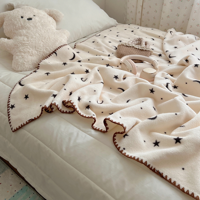 萝莉家纺 2025新款四季多功能双面宝宝绒暖肤毯米粒绒毛毯 星星月亮