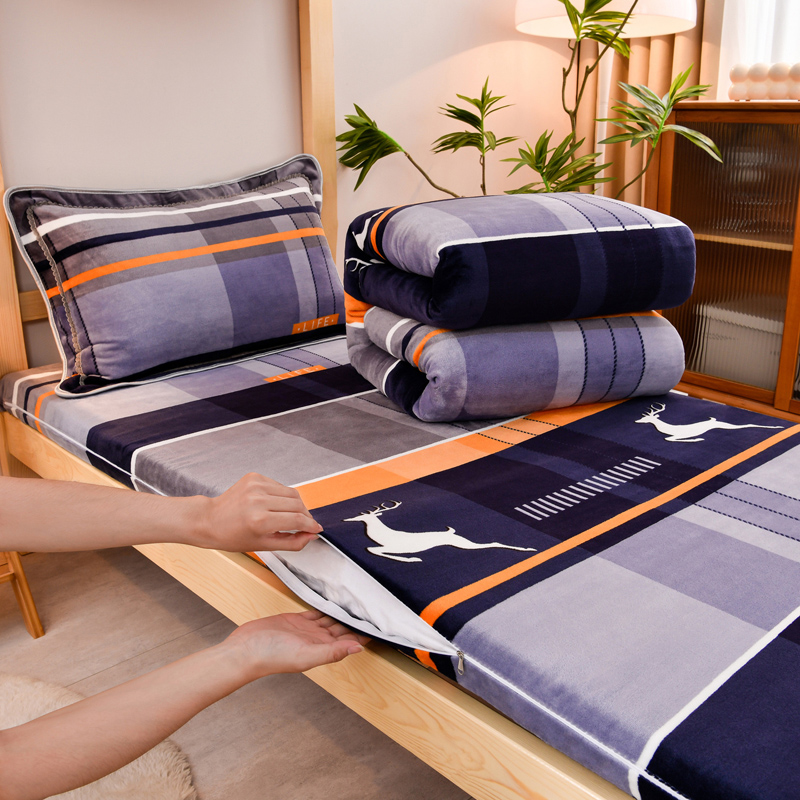 当前位置: 91家纺网 > 商品网购 > 床品套件 > 三件套 > 居尚2025直播爆款高克重印花牛奶绒法莱绒学生三件套 极简主义