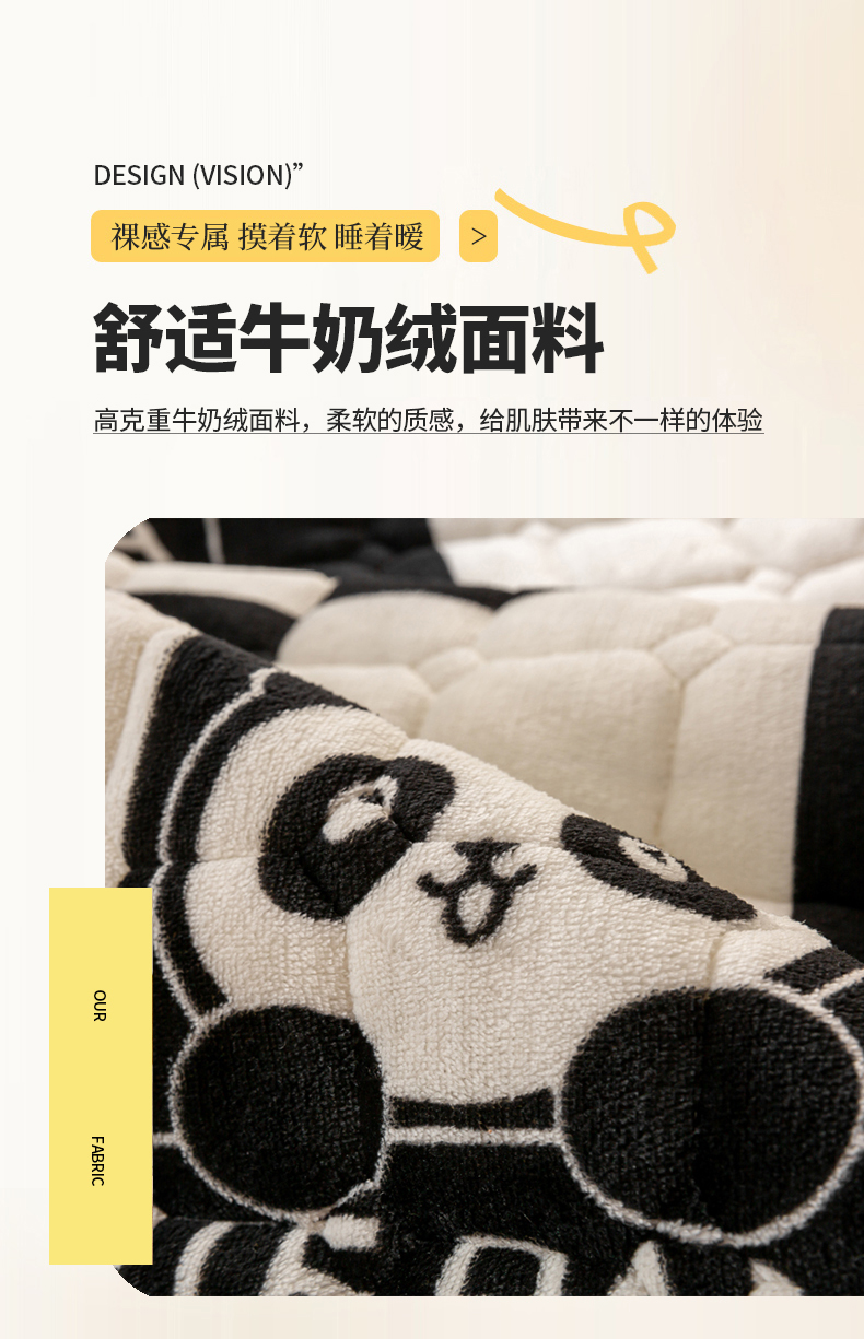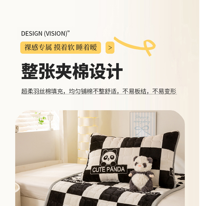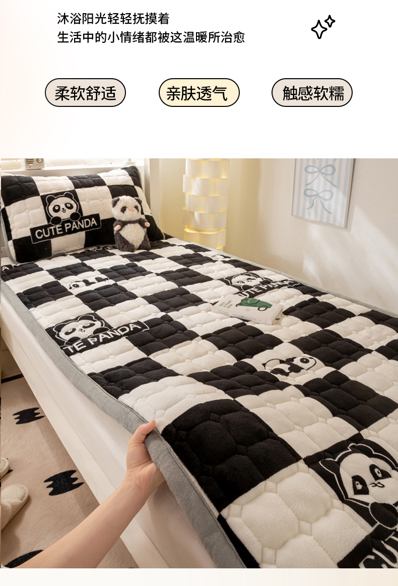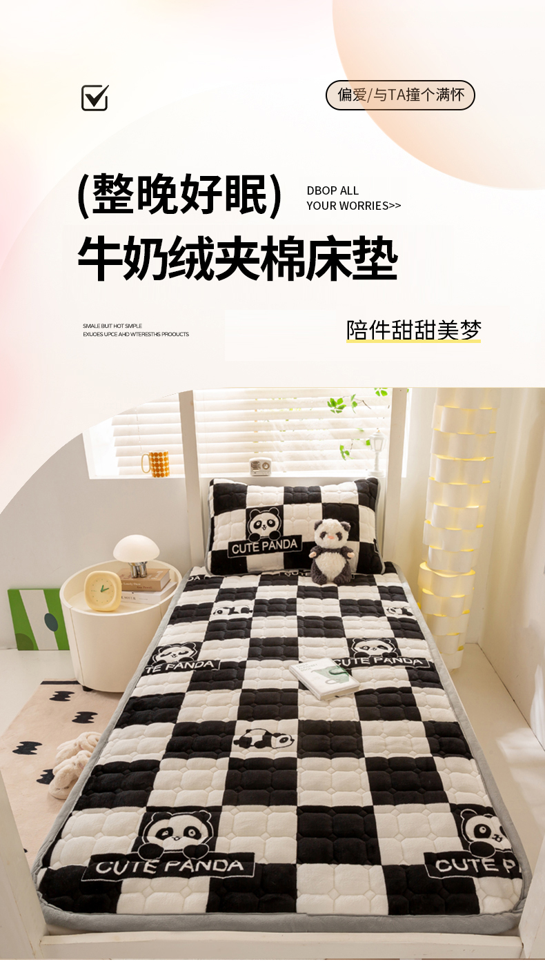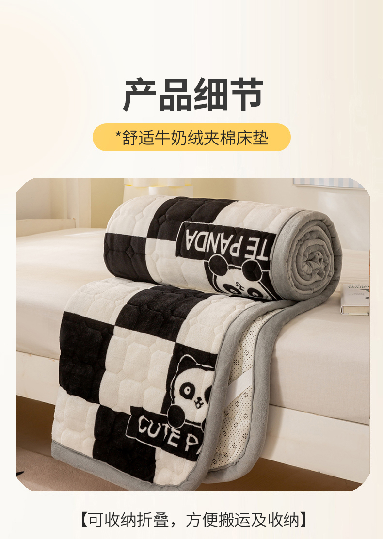 • 91家纺网 家纺一手货源 找家纺 宅部落 2025新款学生宿舍牛奶绒床垫保暖床褥子夹棉加厚印花床护垫 熊猫格