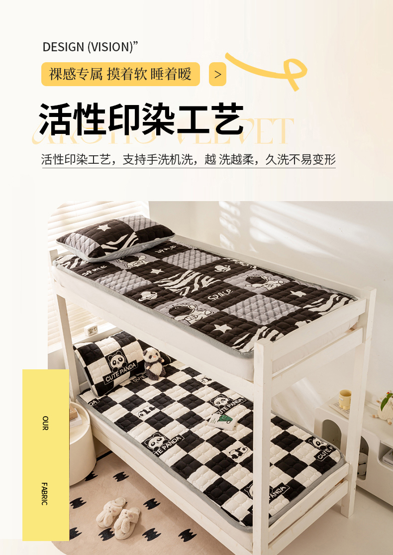 • 91家纺网 家纺一手货源 找家纺 宅部落 2025新款学生宿舍牛奶绒床垫保暖床褥子夹棉加厚印花床护垫 熊猫格 91家纺网 家纺一手货源 找家纺 宅部落 2025新款学生宿舍牛奶绒床垫保暖床褥子夹棉加厚印花床护垫 熊猫格