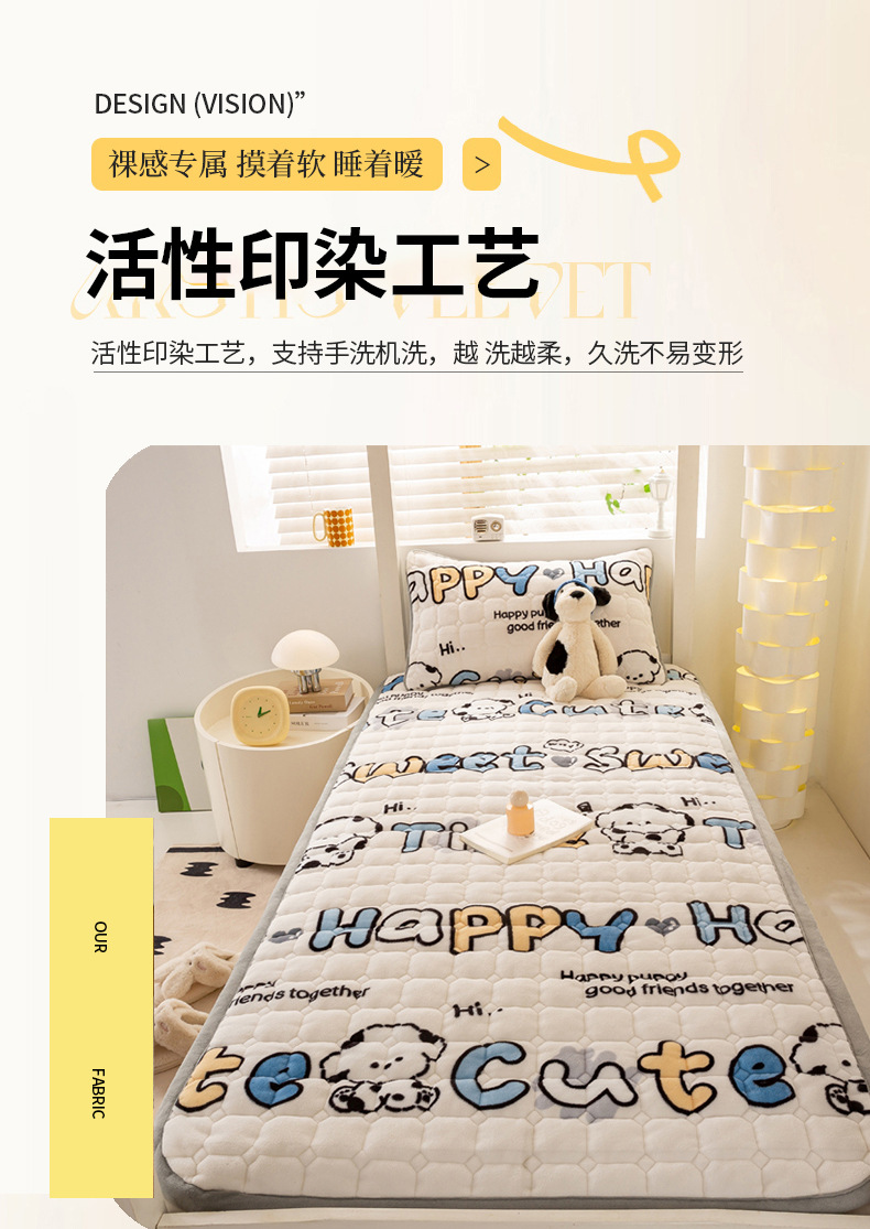 • 91家纺网 家纺一手货源 找家纺 宅部落 2025新款学生宿舍牛奶绒床垫保暖床褥子夹棉加厚印花床护垫 炫彩