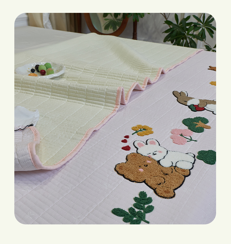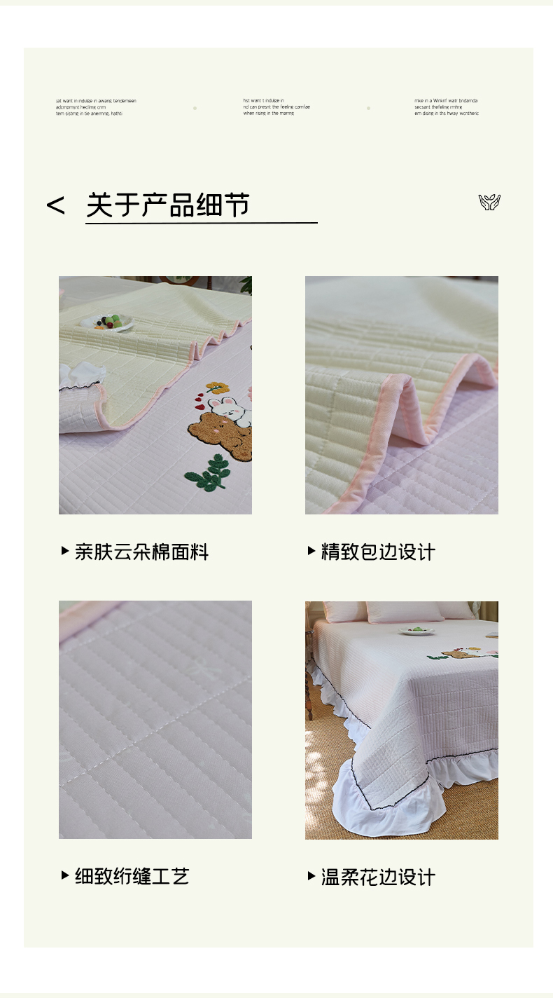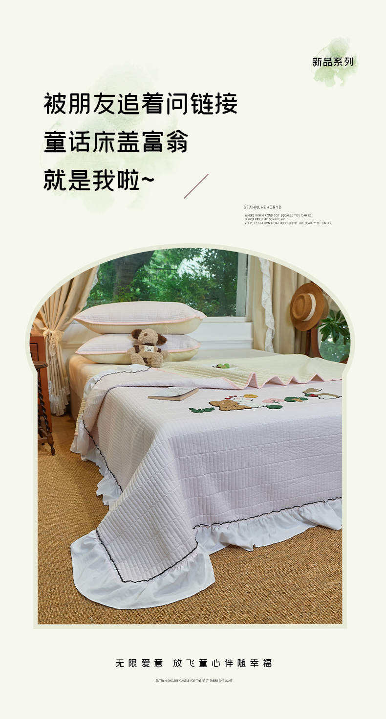 当前位置: 91家纺网 > 商品网购 > 床品套件 > 三件套 > 鑫喜莱家纺 2025新款云朵棉毛巾绣花边款床盖三件套系列 组合图