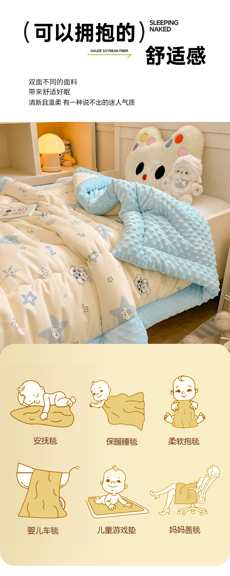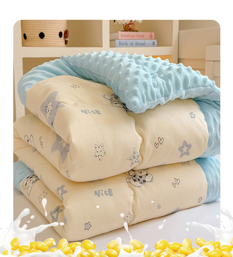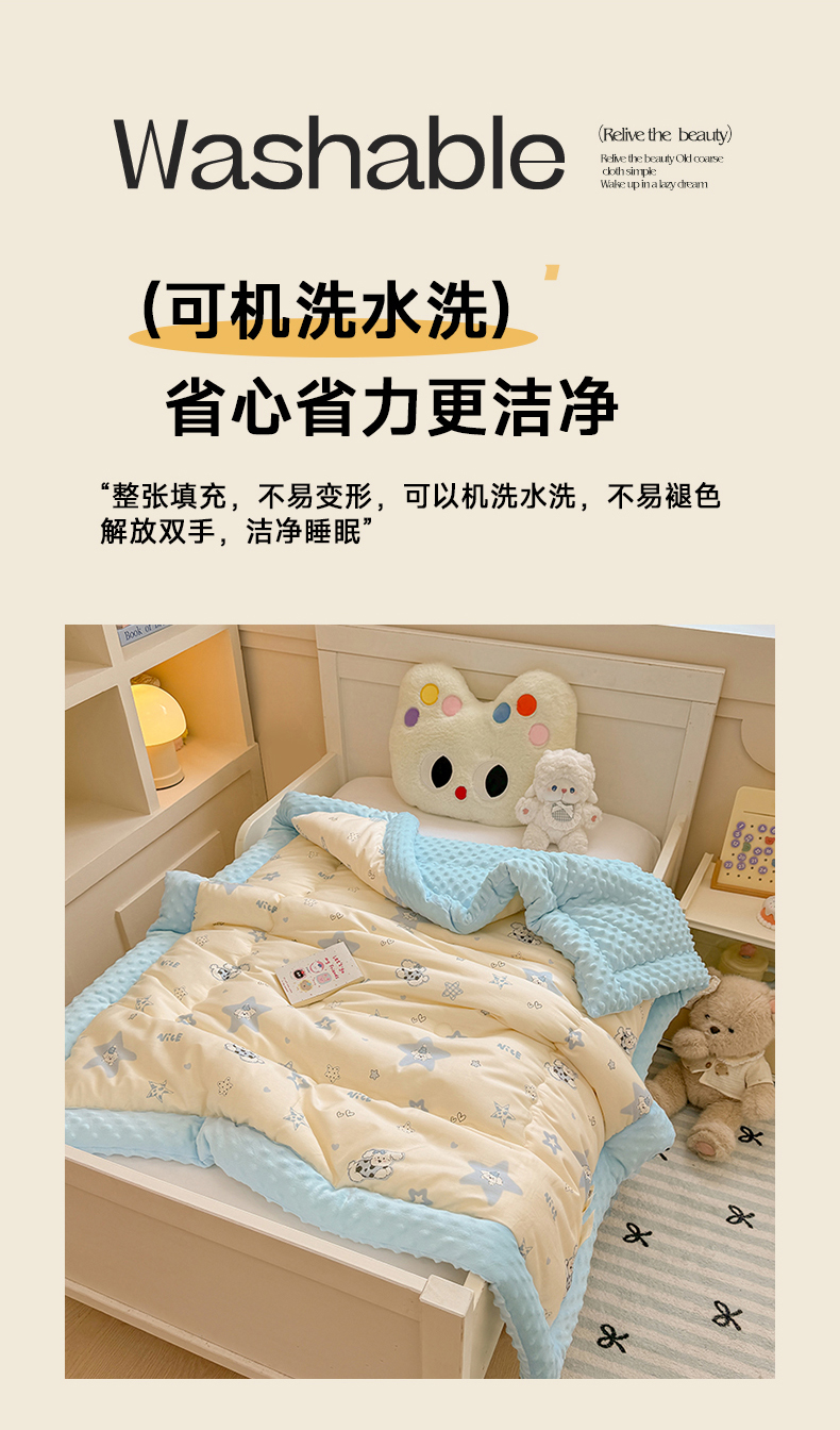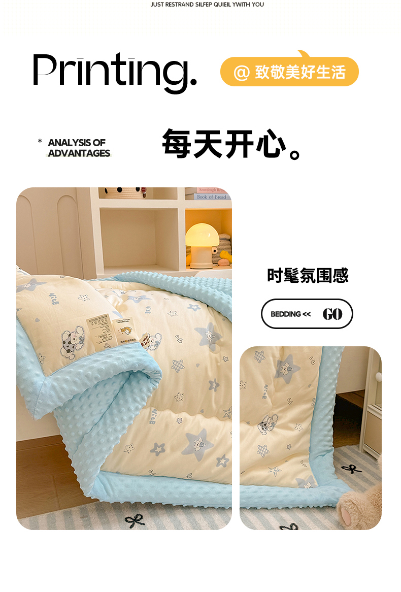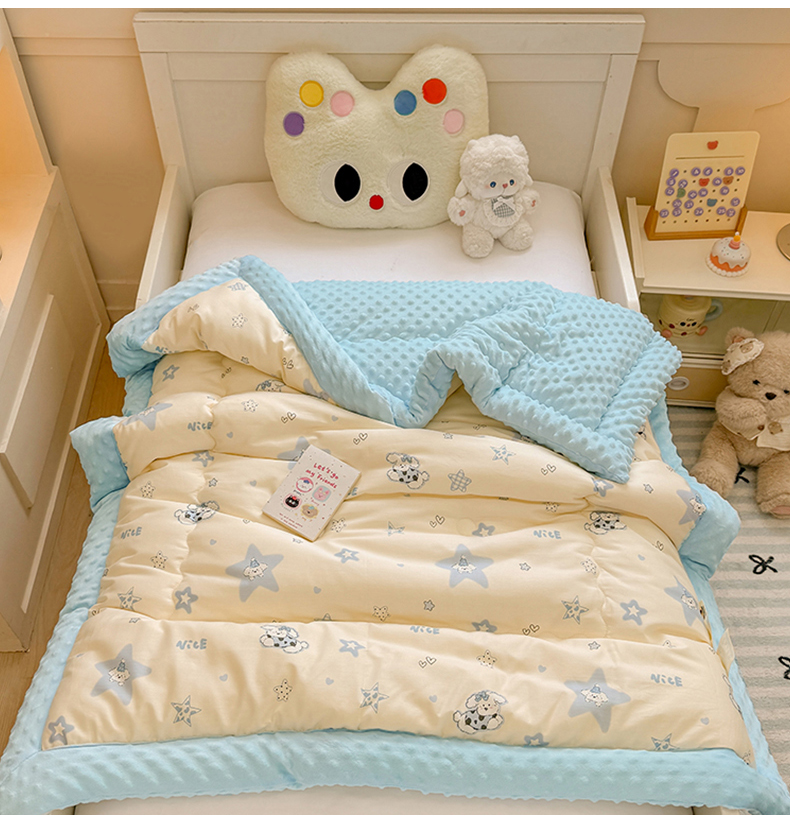 • 91家纺网 家纺一手货源 找家纺 梦依依 2025新款全棉小清新卡通印花系列儿童豆豆被子被芯 一体款-星仔