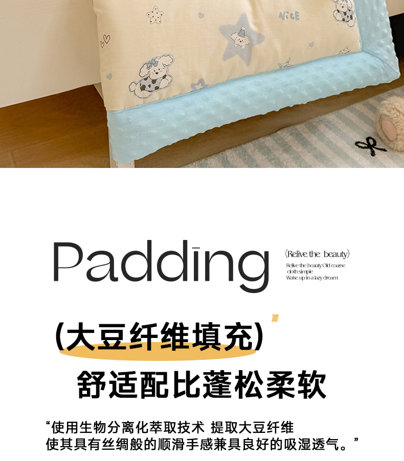 • 填充纤维种类: 大豆蛋白改性聚酯纤维