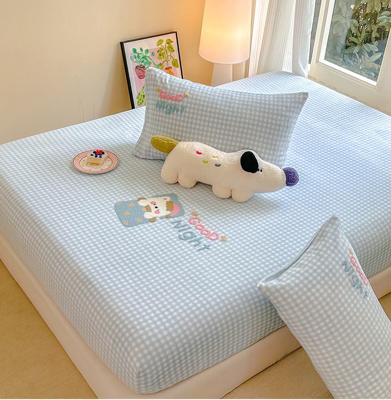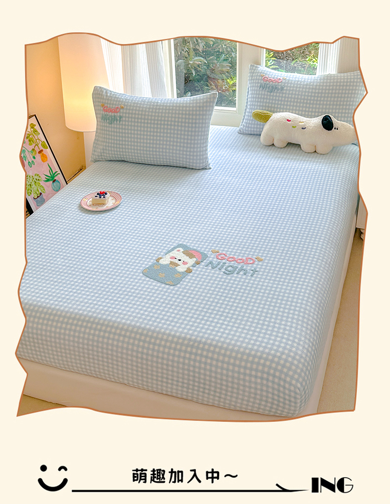 (总)布柔 2025新款毛巾绣花卡通ins风牛奶绒床笠床笠单件单床笠-甜心,甜心米,甜心粉,甜心咖