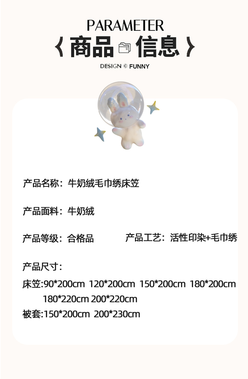 • 91家纺网 家纺一手货源 找家纺 (总)布柔 2025新款毛巾绣花卡通ins风牛奶绒床笠床笠单件单床笠-甜心,甜心米,甜心粉,甜心咖