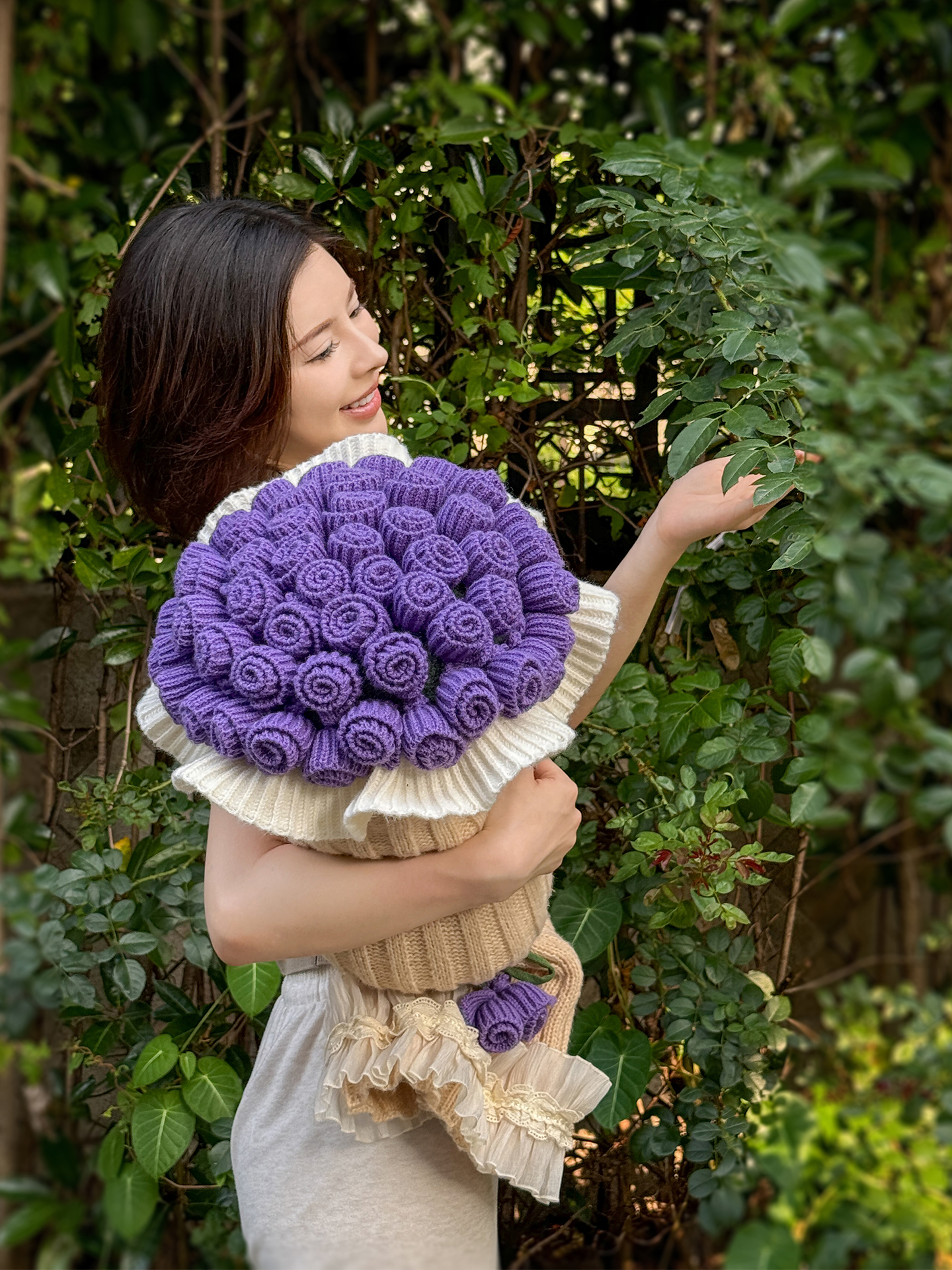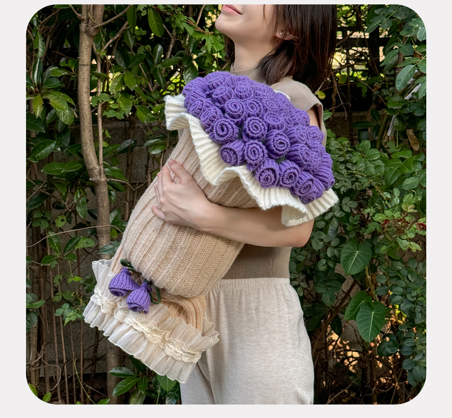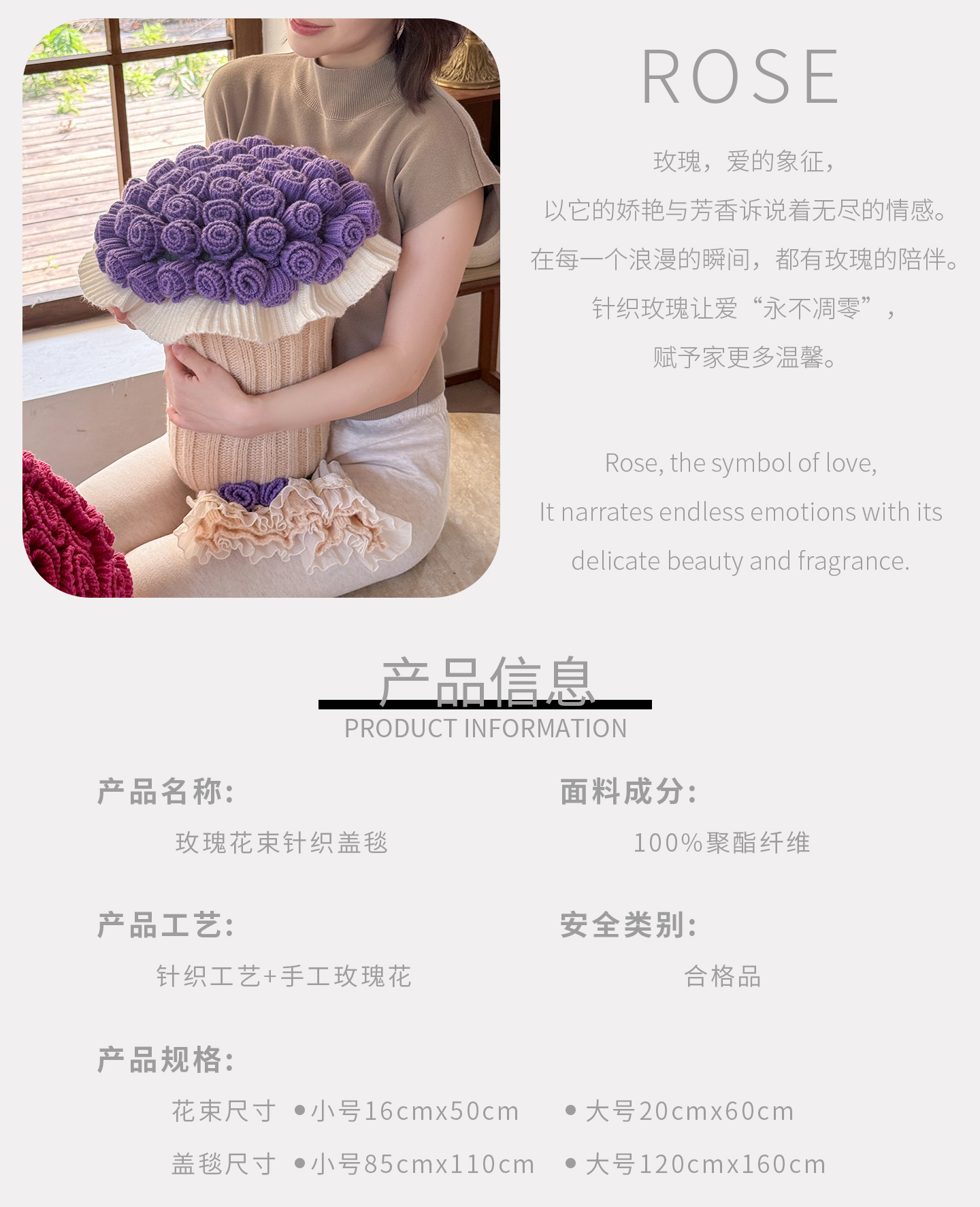 商品名称:丹本-2025新款网红直播爆款多功能玫瑰花束抱枕卧室沙发靠枕半边绒针织礼品毯毛毯 星穹紫