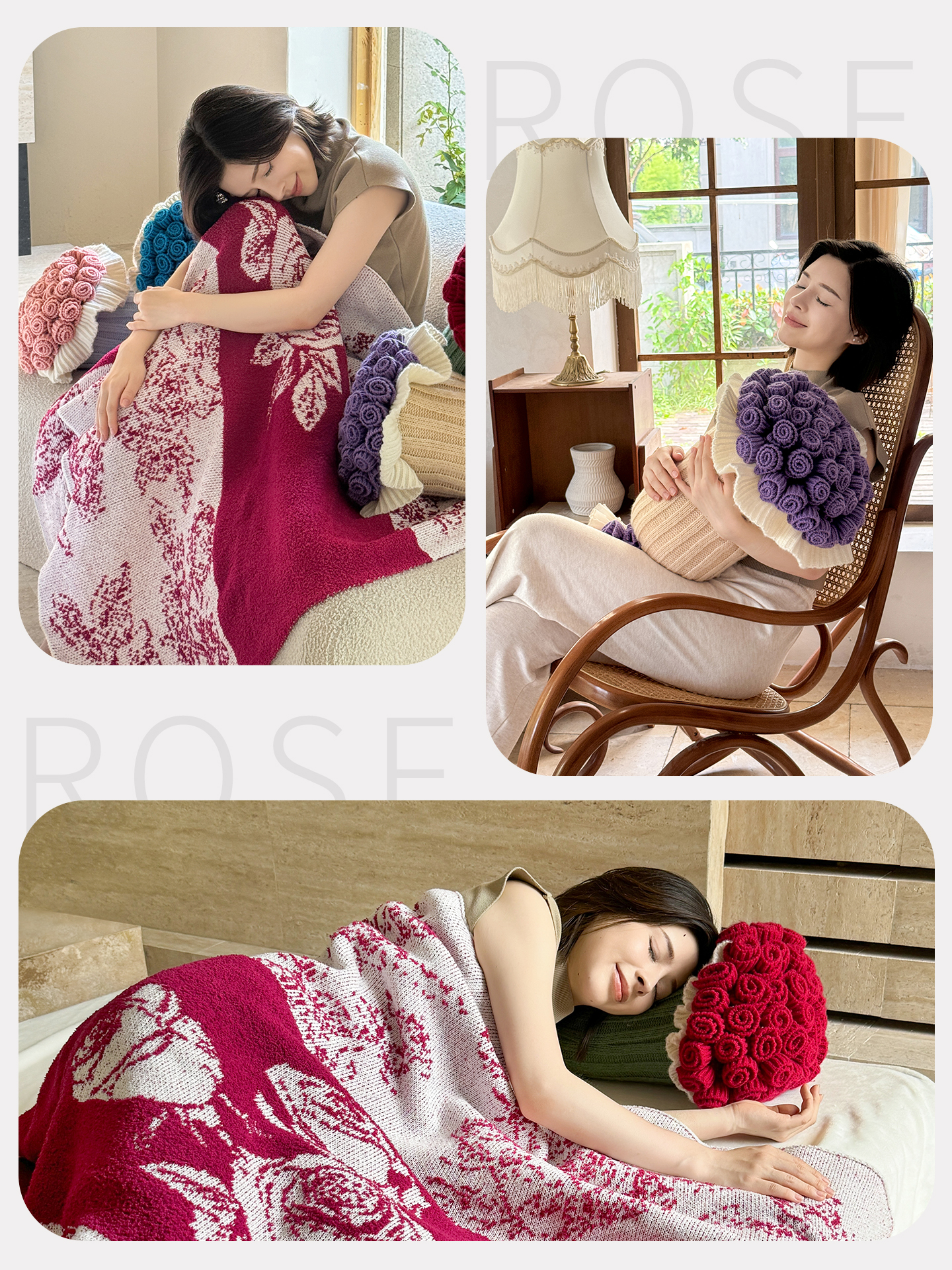 丹本-2025新款网红直播爆款多功能玫瑰花束抱枕卧室沙发靠枕半边绒针织礼品毯毛毯 星穹紫