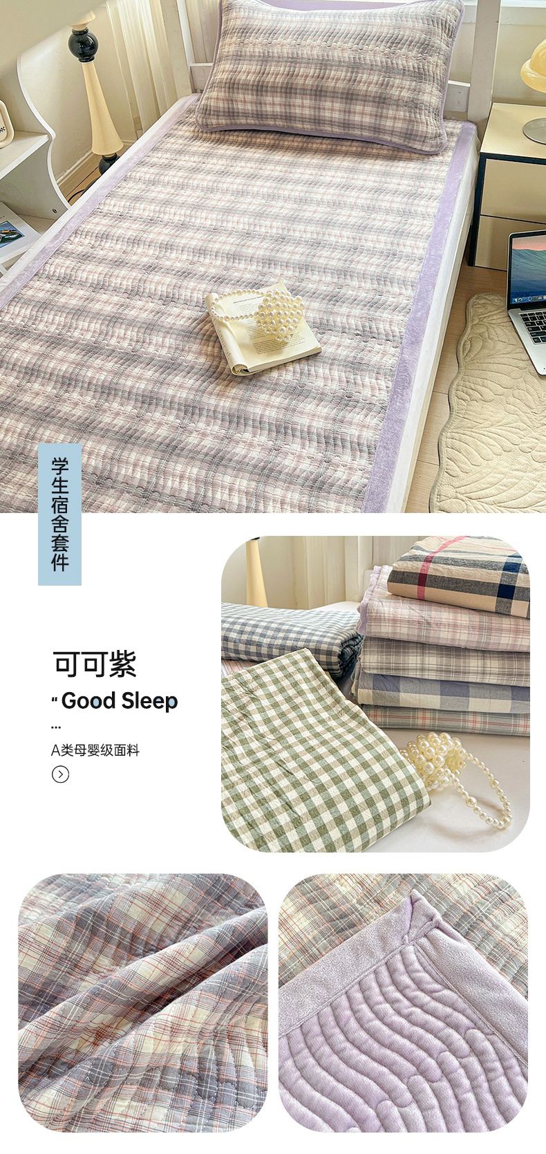 当前位置: 91家纺网 > 商品网购 > 床上用品 > 床盖 > 乐野家居 2025新款开学季 A类全棉水洗棉+宝宝绒学生床盖三件套(多功能被套) 绿小格