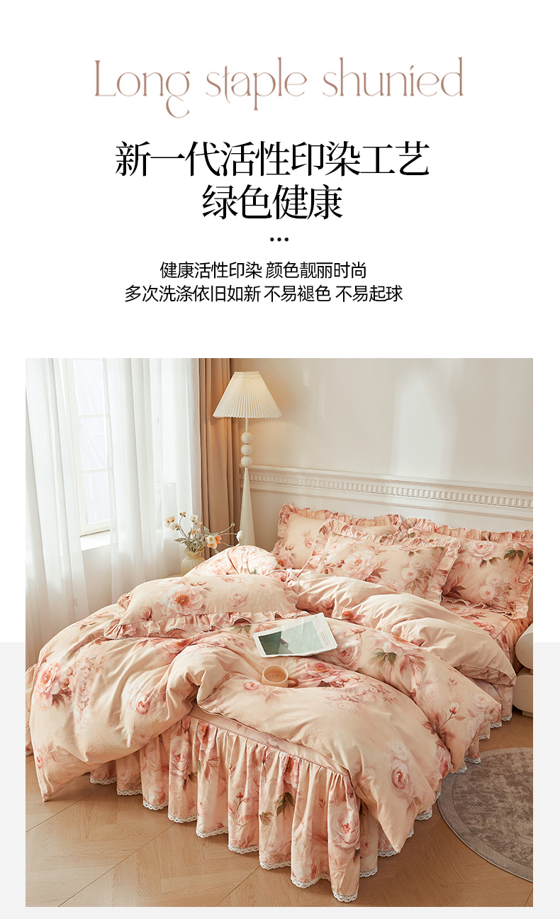 商品名称:(总)缦彩 2025新款100%全棉A类数码印花床裙遮丑花边床单床罩四件套