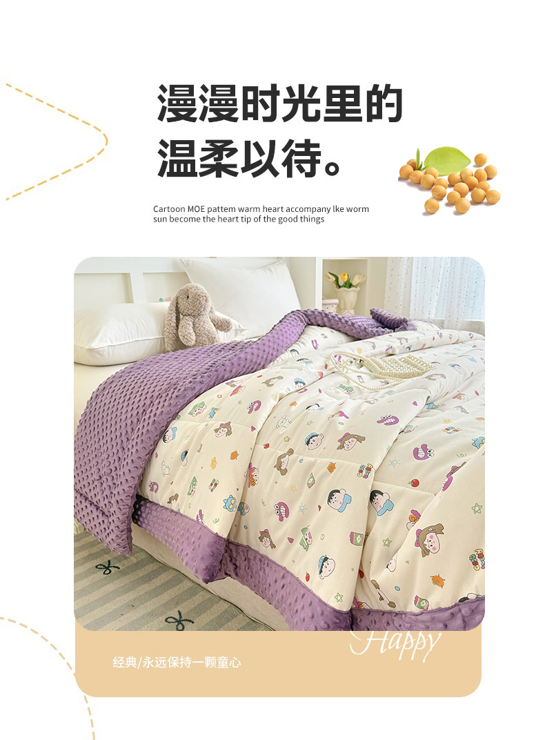 总 宜梦家居【需要买家秀请联系老板】 2025新款A类纯棉婴儿绒豆豆被四季夏凉春秋被子冬被芯,青春绽放,幸运兔,法式玫瑰,复古琉璃,好多鱼,郁金香-紫,月满西楼