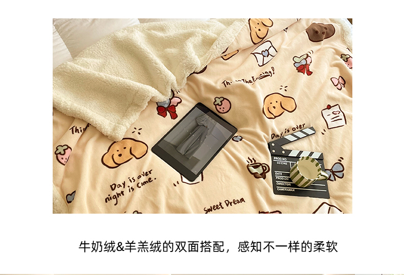 商品名称:十里居 2025新款印花牛奶绒羊羔绒盖毯毛毯午休毯卡通多功能沙发毯 蓝色涂鸦