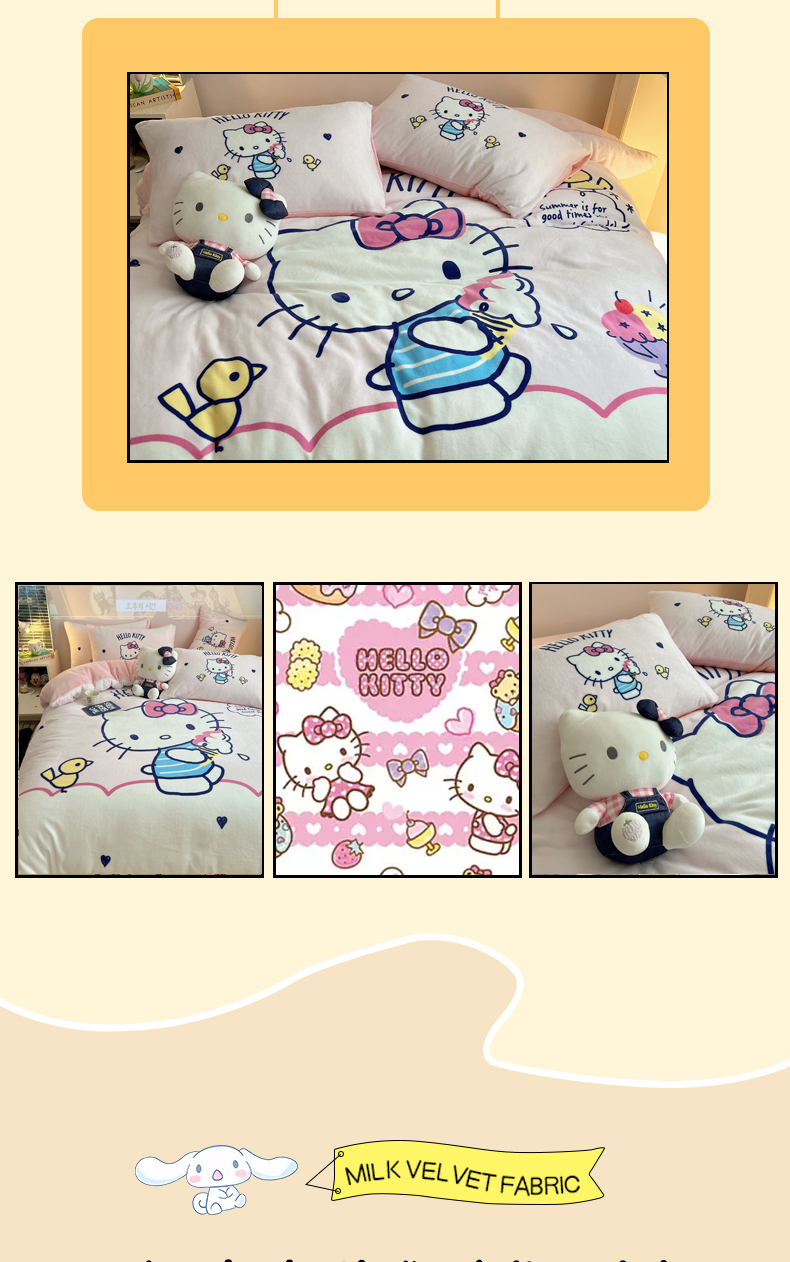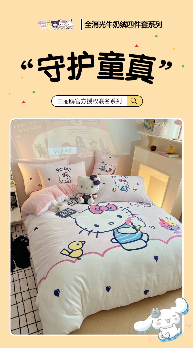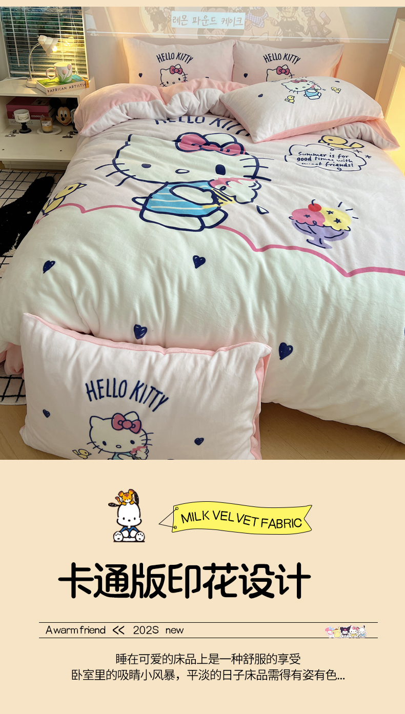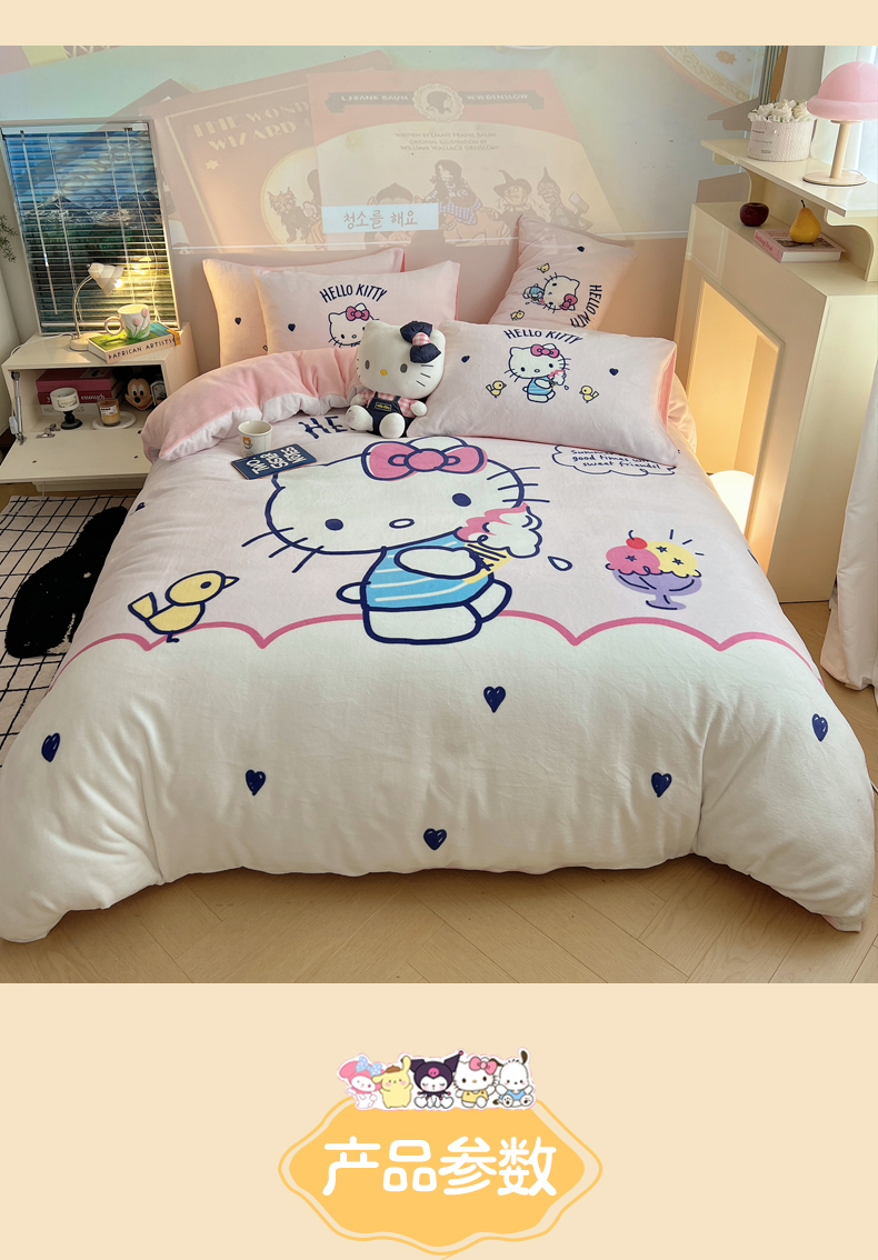 当前位置: 91家纺网 > 商品网购 > 床品套件 > 四件套 > 牛奶绒四件套 > 三朵家纺 2025新款数码大版牛奶绒印花三丽鸥系列四件套 冰激凌KT