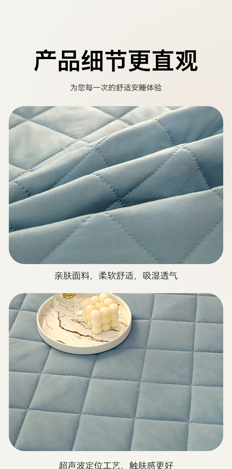 • 91家纺网 家纺一手货源 找家纺 锦眠床笠 2025新款亲肤夹棉床笠 蓝色