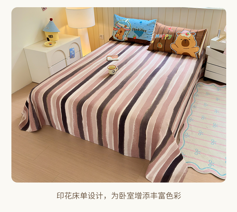 商品名称:优彩 2025新款数码印花全棉磨毛毛巾绣四件套 卡皮巴拉-奶咖
