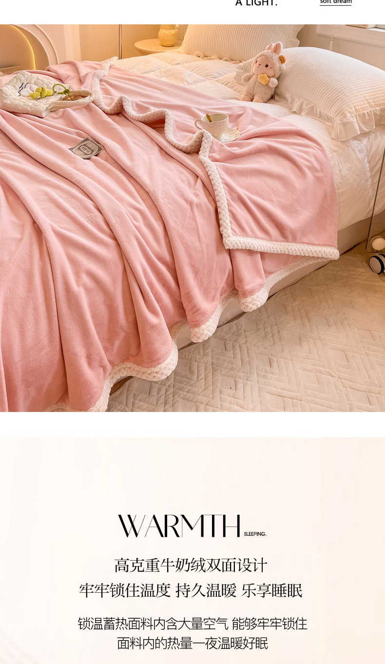 当前位置: 91家纺网 > 商品网购 > 毛毯休闲毯绒毯 > 毛毯 > 眠博士 2025新款高克重牛奶绒轻奢大包边毛毯被套 轻奢毛毯-粉色