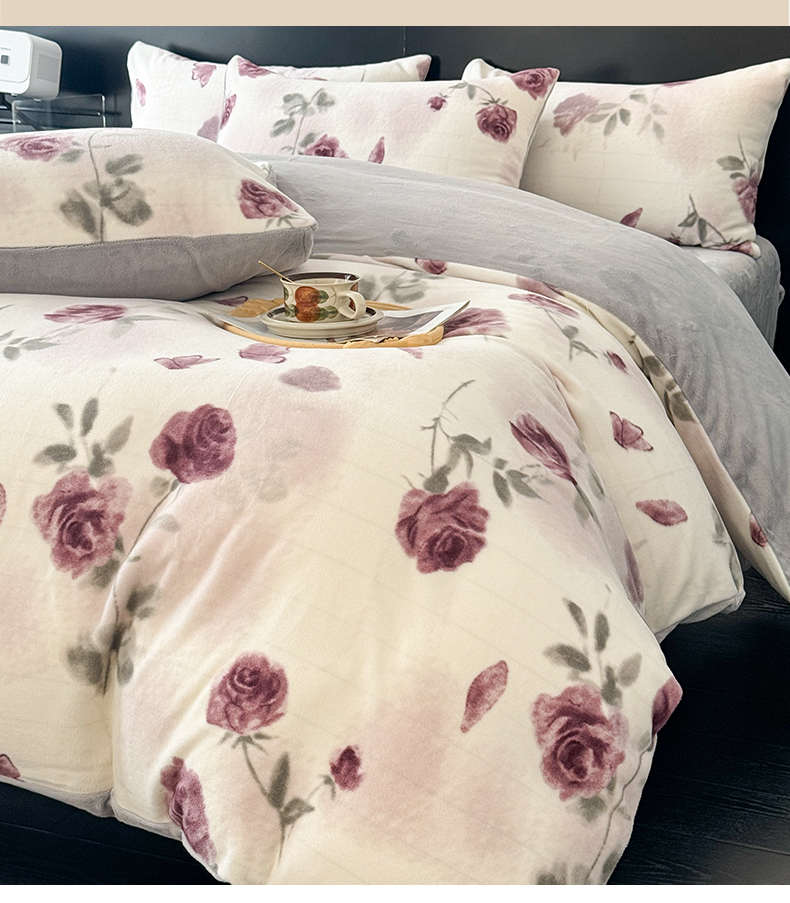 (总)子曰 2025新款A类高克重蒂肤绒羊绒保暖印花四件套