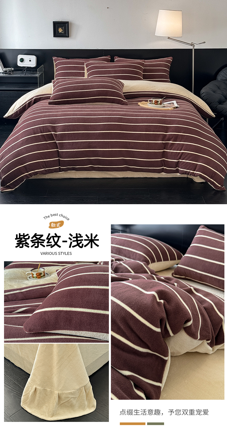 (总)子曰 2025新款雕花加厚牛奶绒宽边工艺款四件套-小香风,小香风-咖,小香风-粉,小香风-绿,小香风-米白,小香风-紫