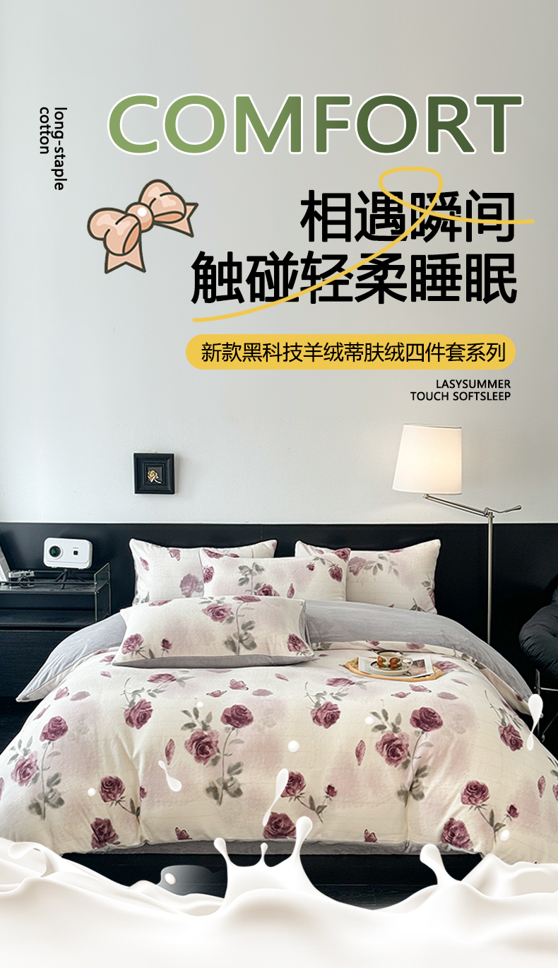 商品名称:(总)子曰 2025新款A类高克重蒂肤绒羊绒保暖印花四件套