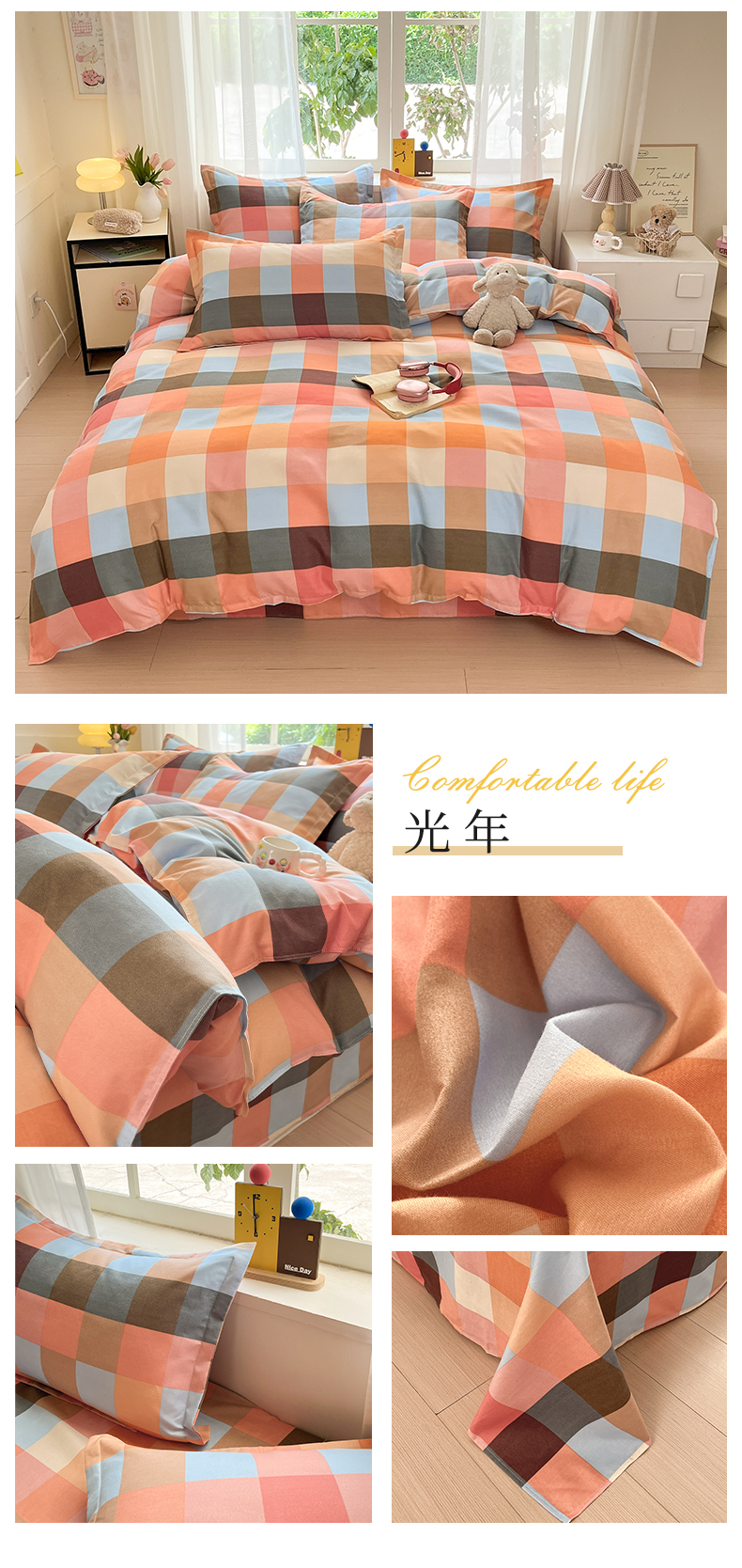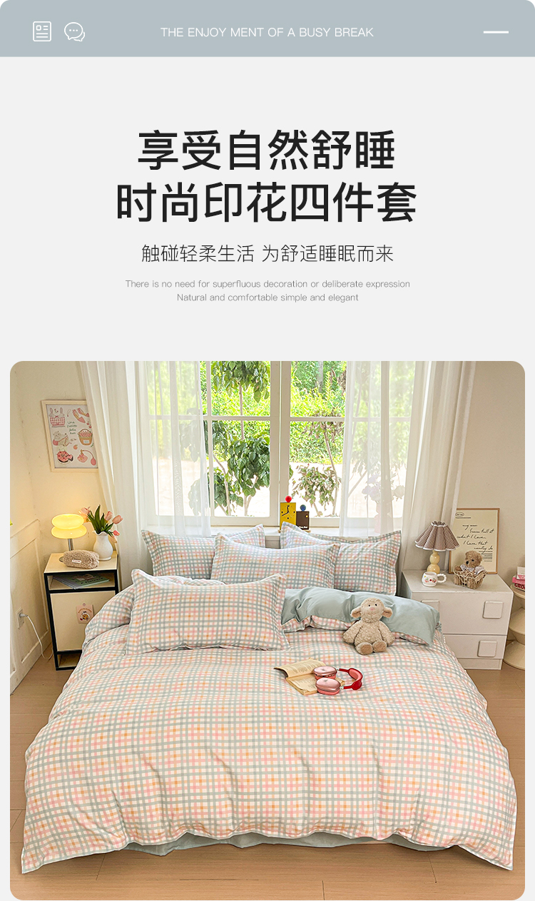 当前位置: 91家纺网 > 商品网购 > 床品套件 > 四件套 > 其它四件套 > 好亿来家纺 2025新款植物羊绒加厚斜纹磨毛四件套及单被套系列 彩虹格
