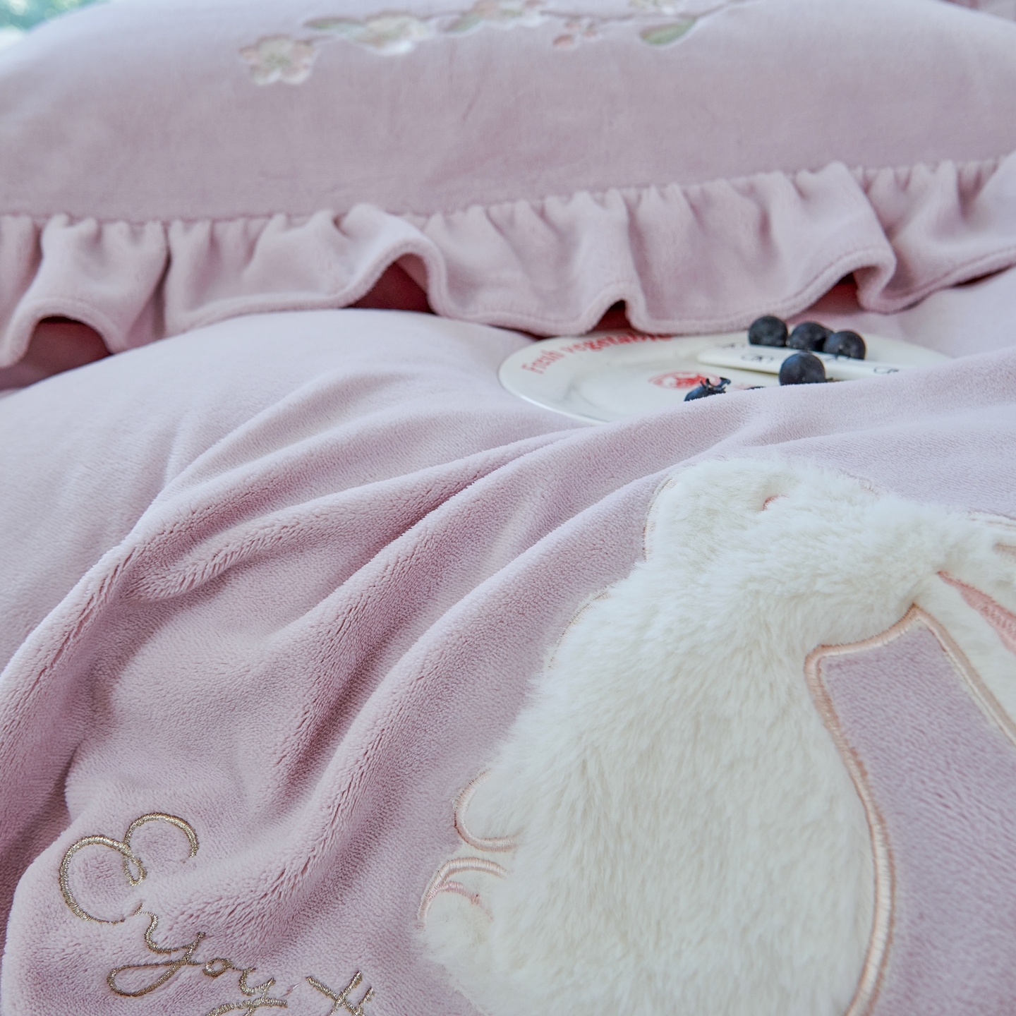 (总)优姿家纺 2025新款牛奶绒花边绣花床盖四件套,花漾时光-果绿,花漾时光-玖红色,花漾时光-米色,花漾时光-桃红色,花漾时光-天空兰,花漾时光-雾霾蓝