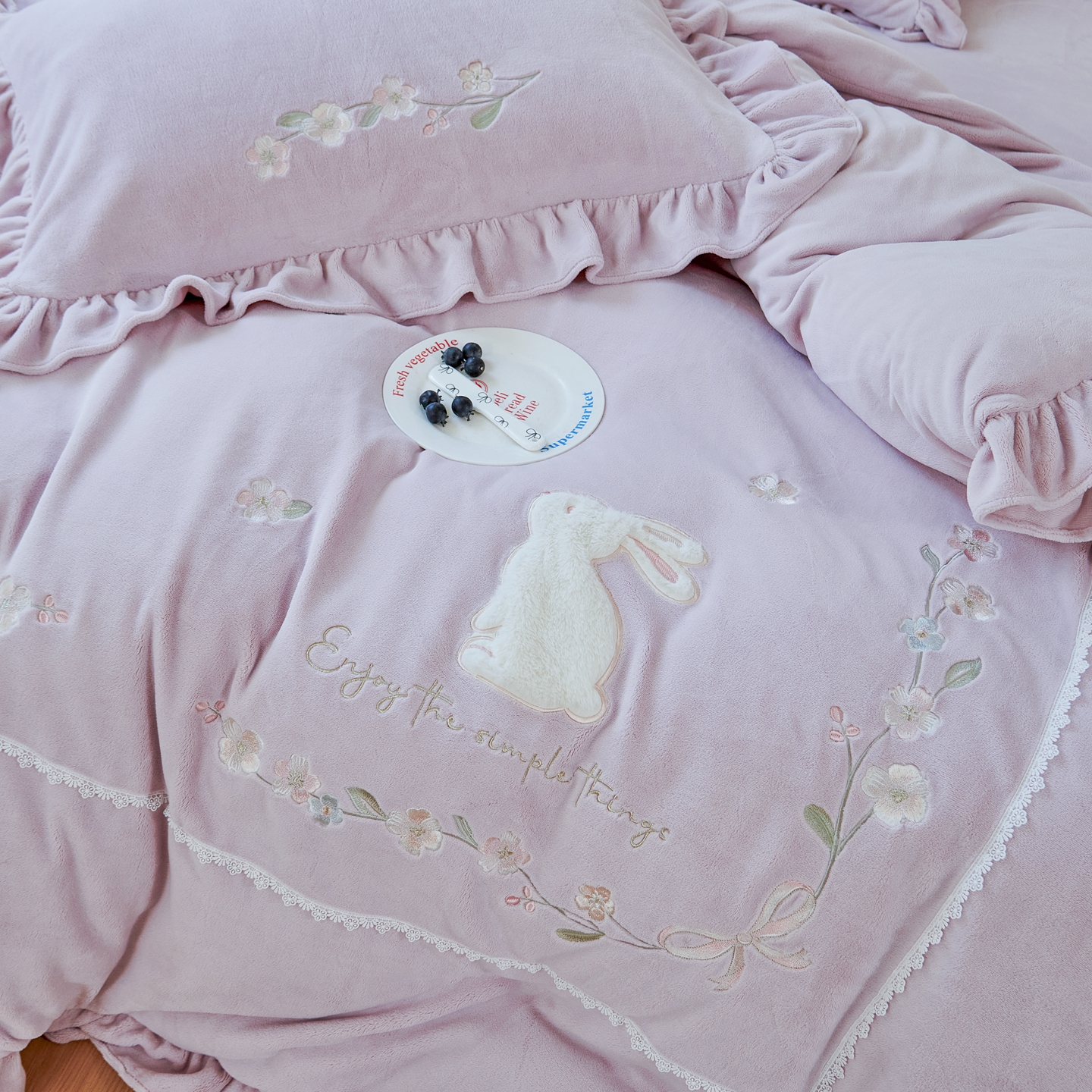 商品名称:优姿家纺 2025新款11斤全消光韩版贴布绣保暖四件套- 茱迪 淡雅紫