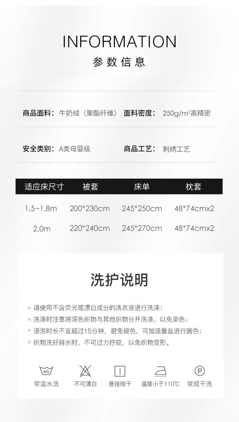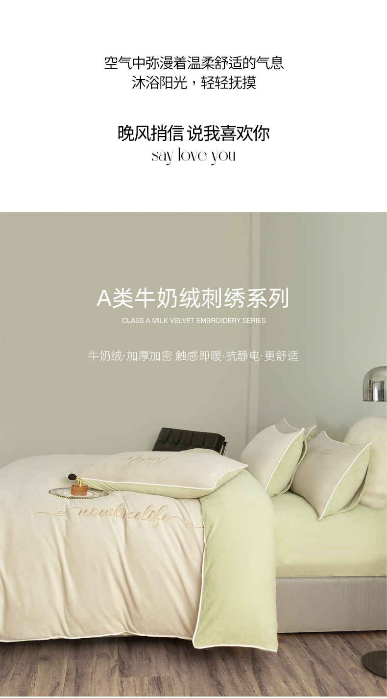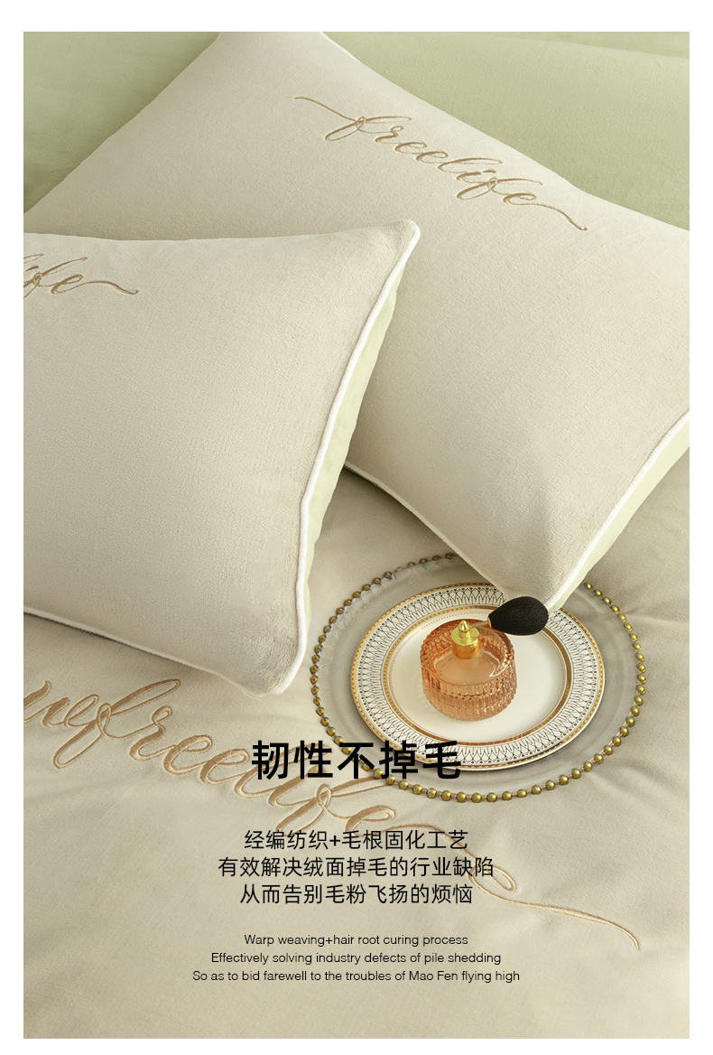 当前位置: 91家纺网 > 商品网购 > 床品套件 > 四件套 > 牛奶绒四件套 > 千朵森 2025新款奢美牛奶绒英文刺绣四件套 奢美-浅奈灰配秧绿