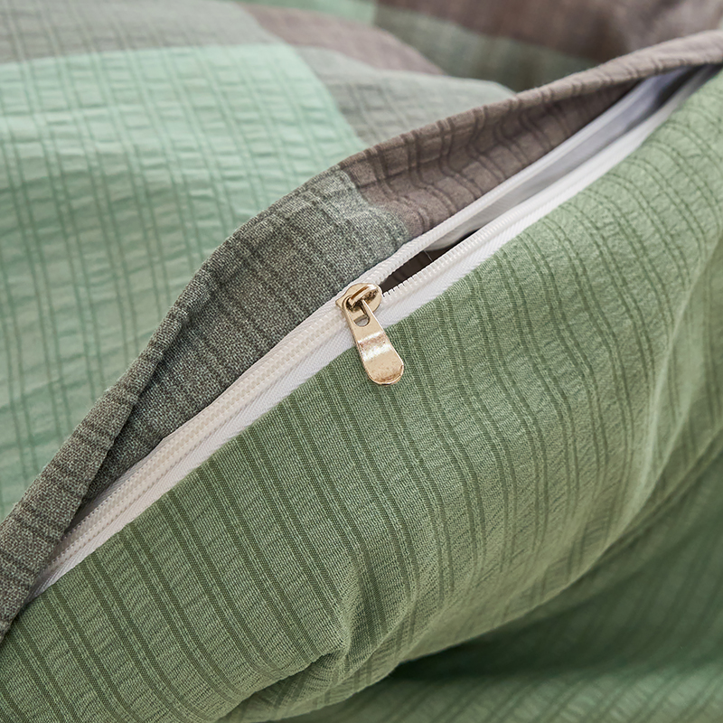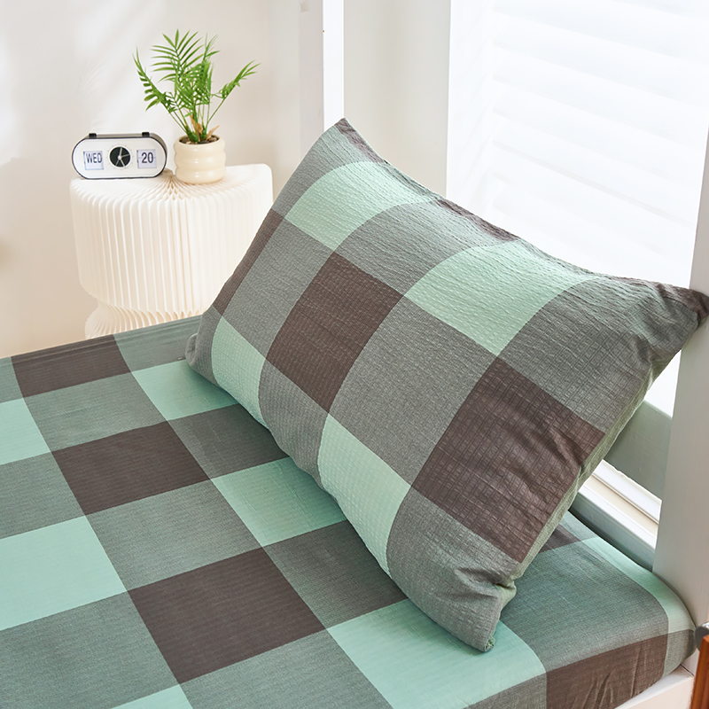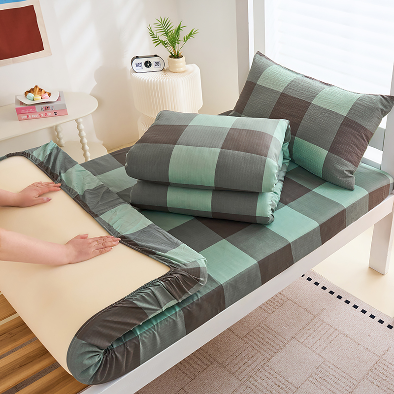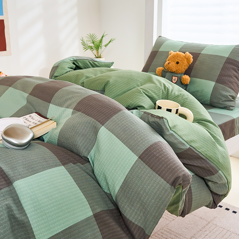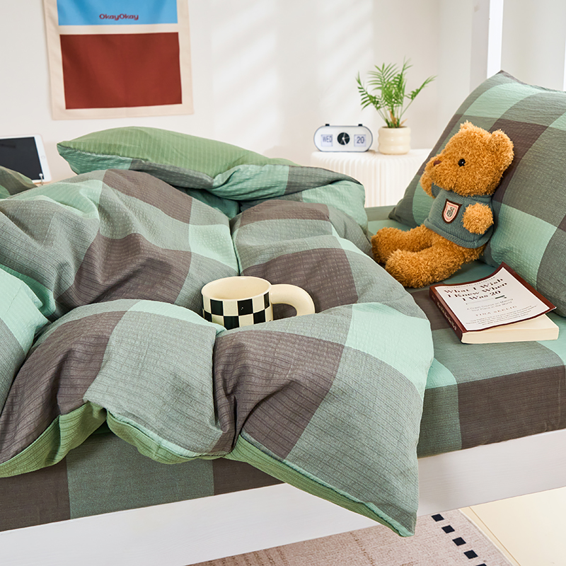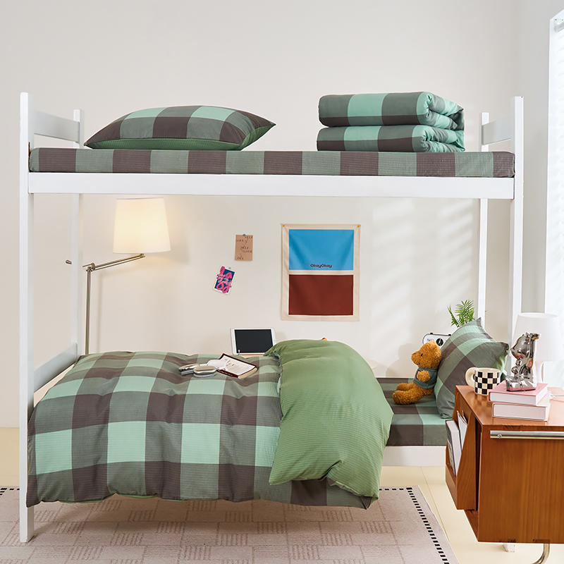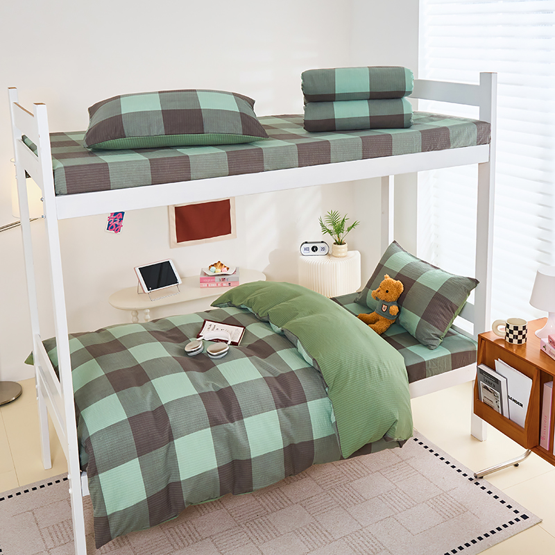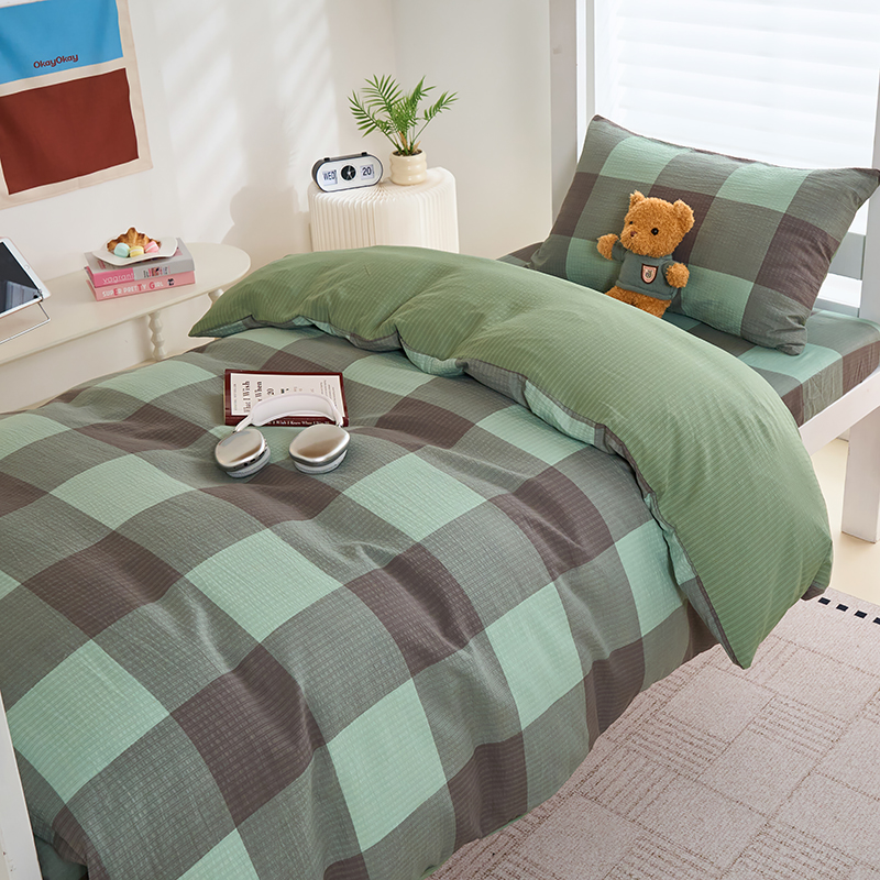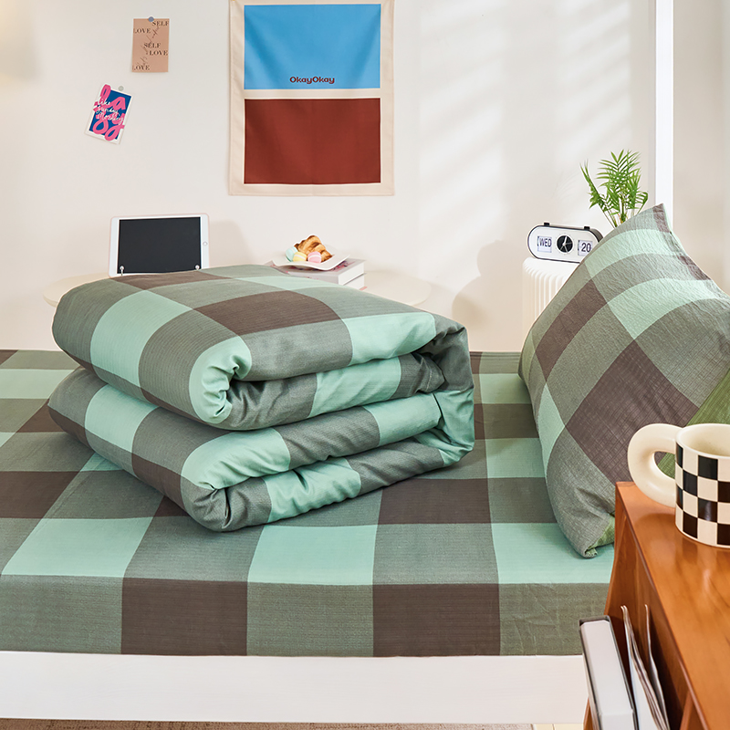 商品名称:卢赛尔 2025新款简约格子水洗学生季学生宿舍三件套 赫本-绿