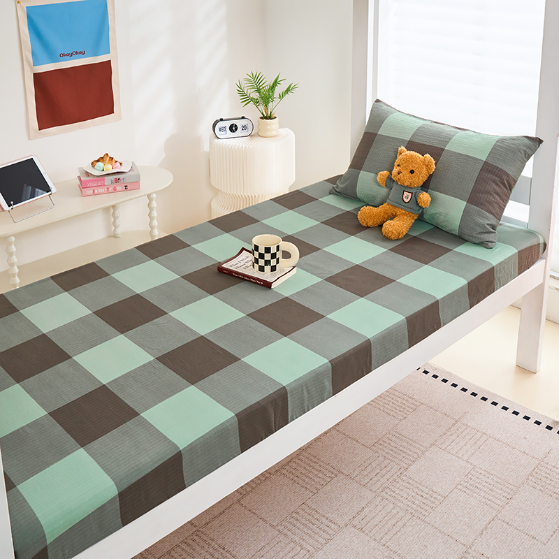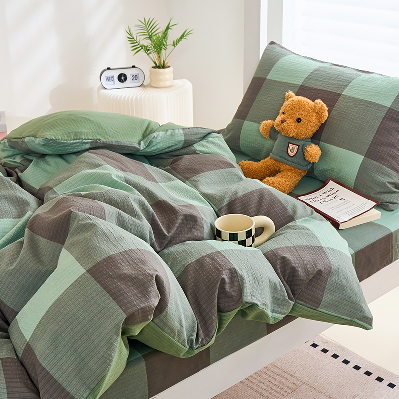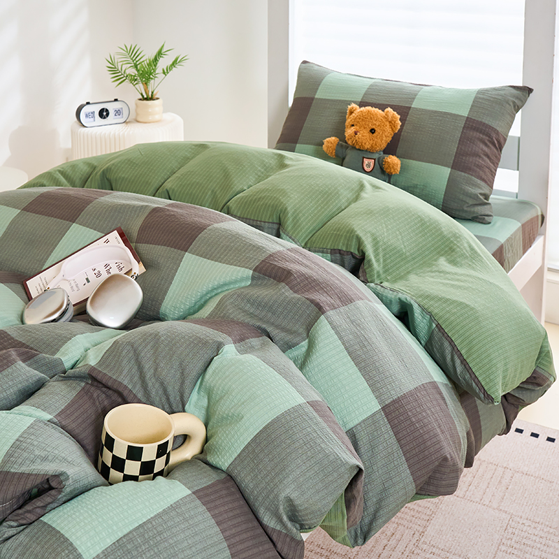 卢赛尔 2025新款简约格子水洗学生季学生宿舍三件套 赫本-绿