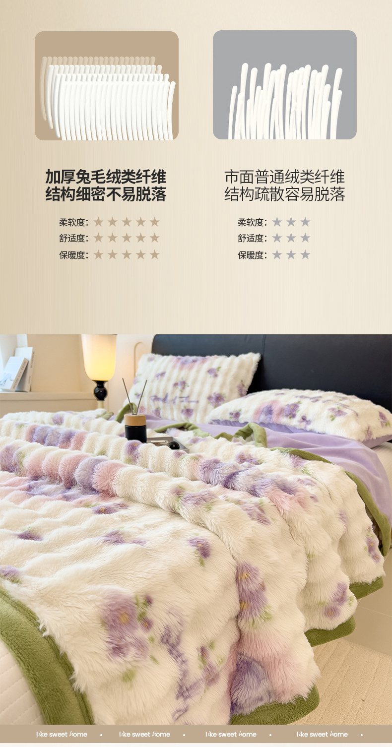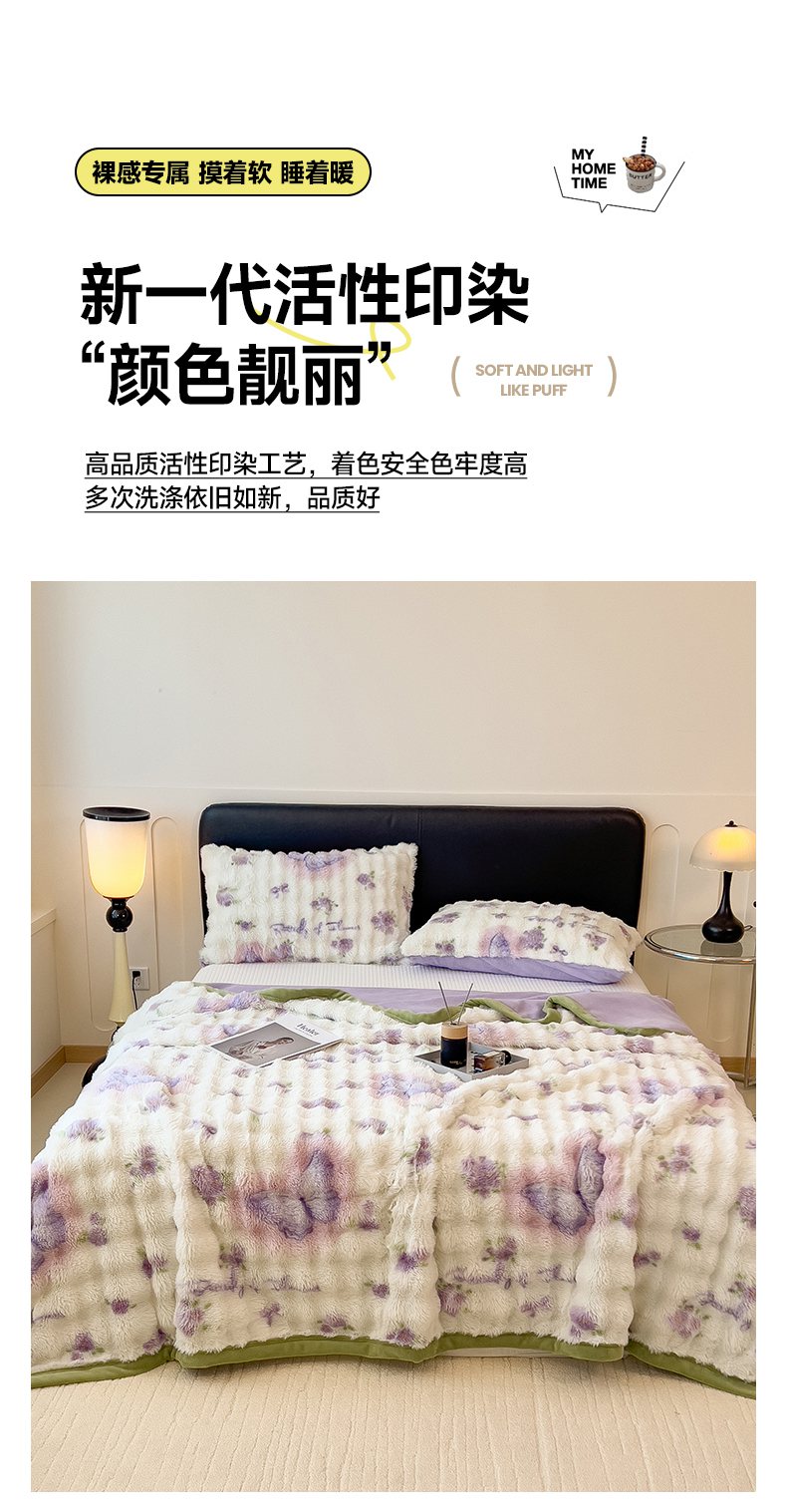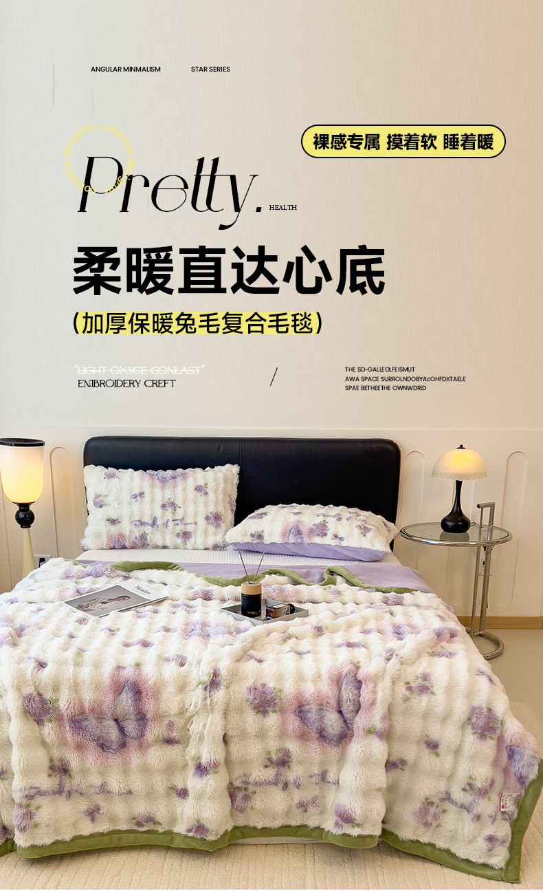 商品名称:摩妮卡 2025新款热款直播600克大泡泡兔毛复合毛毯牛奶绒 花园蝴蝶