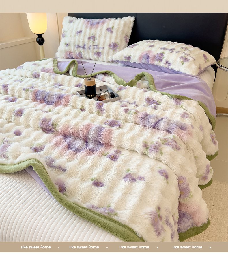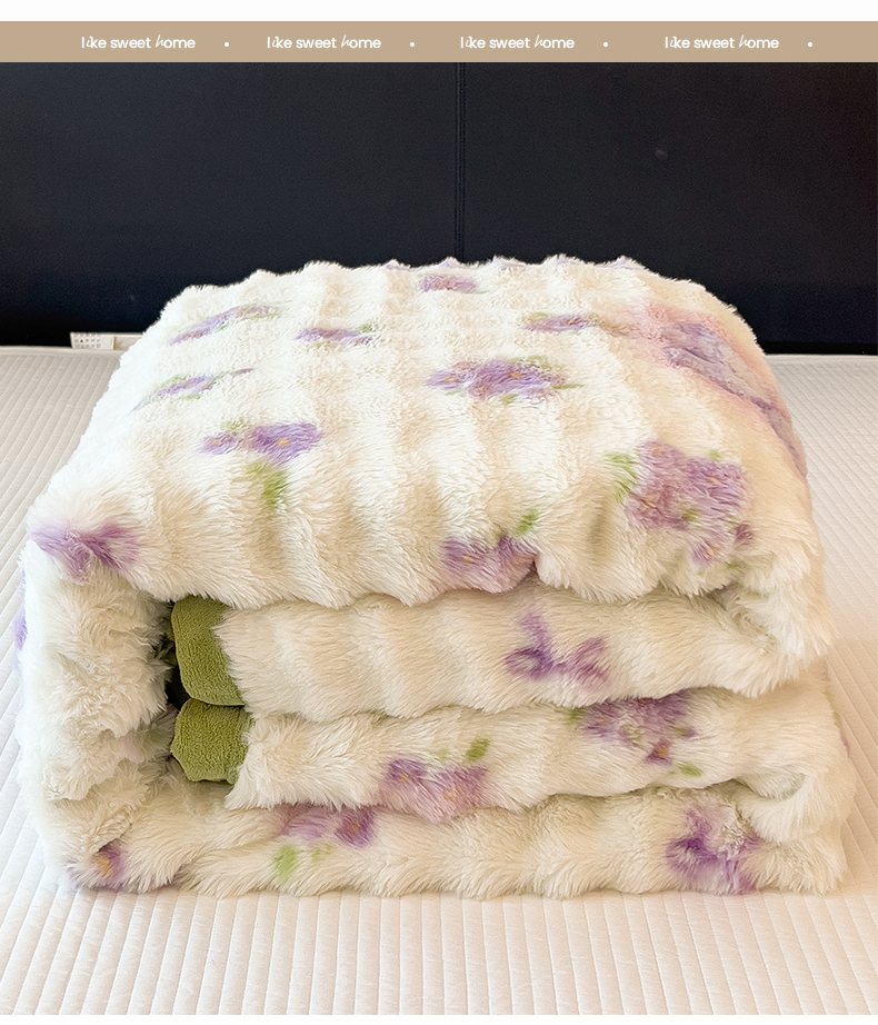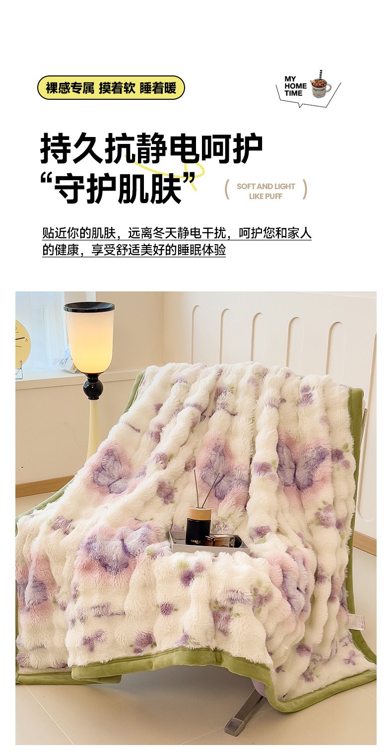 摩妮卡 2025新款热款直播600克大泡泡兔毛复合毛毯牛奶绒 花园蝴蝶
