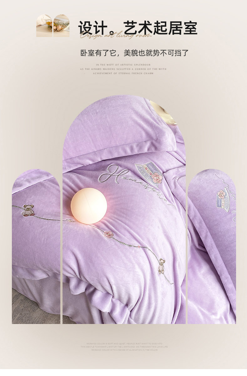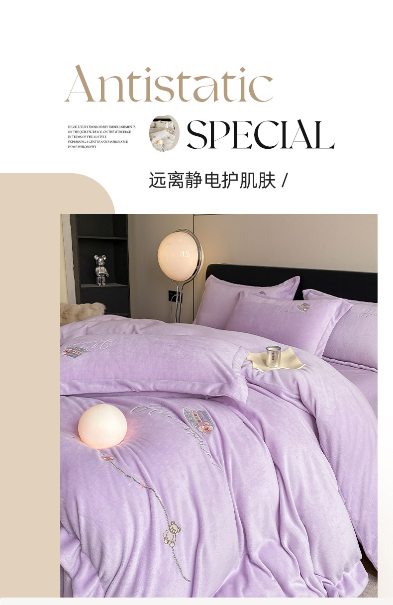 商品名称:绒世界 2025新款秋冬加厚公主日记牛奶绒四件套 风信紫