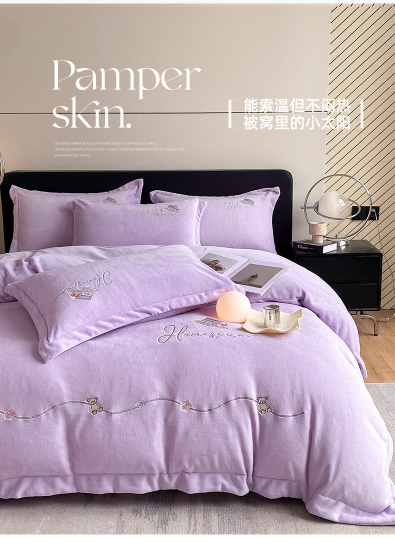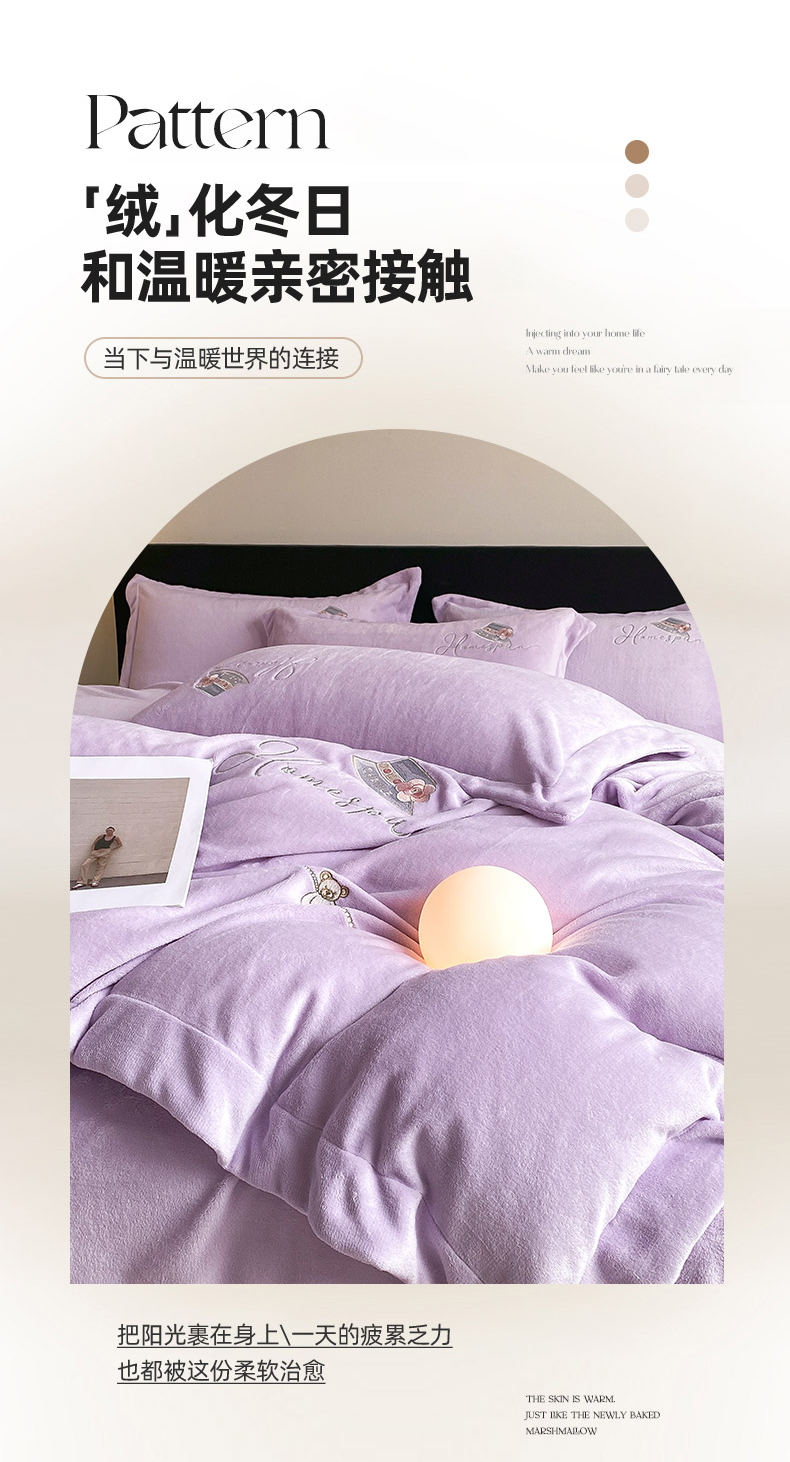 绒世界 2025新款秋冬加厚公主日记牛奶绒四件套 风信紫