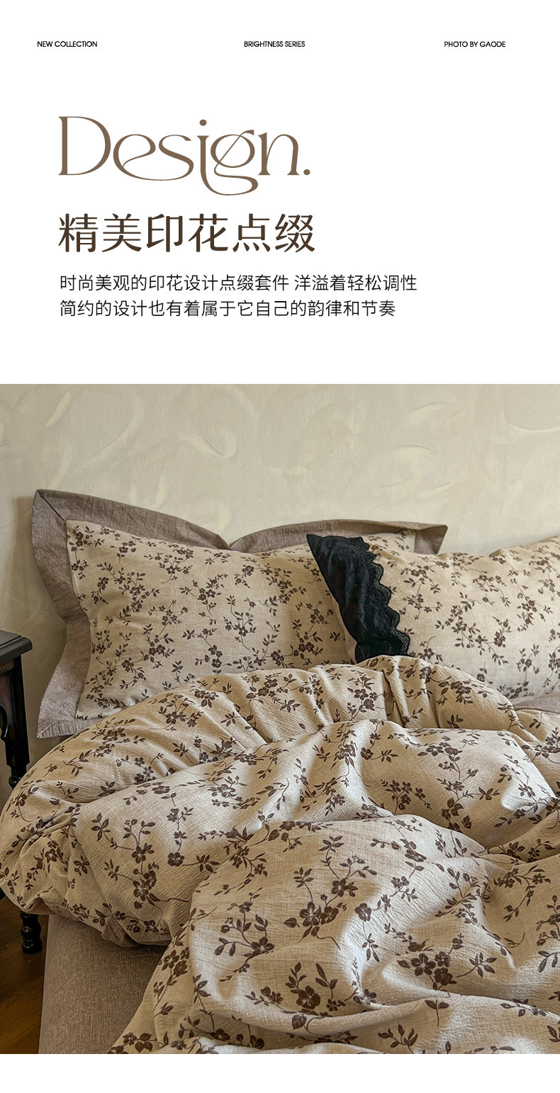商品名称:繁花家居 2025秋冬磨毛复古亚麻棉麻提花超软四件套 古韵芳菲